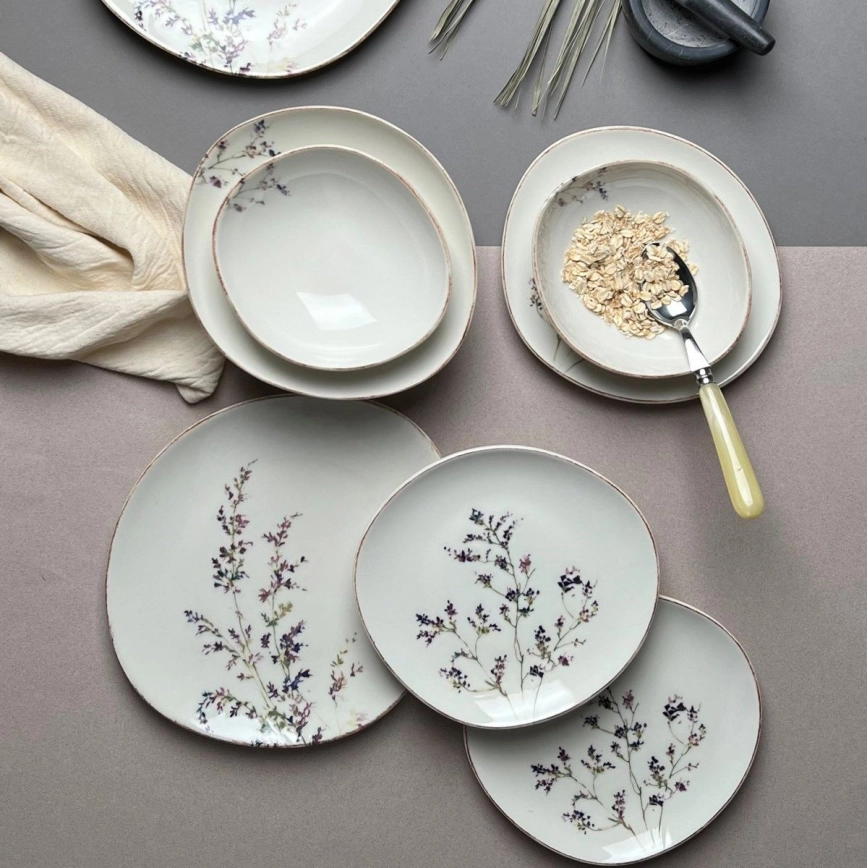 12-delt spisesæt, hvid/lilla, porcelæn