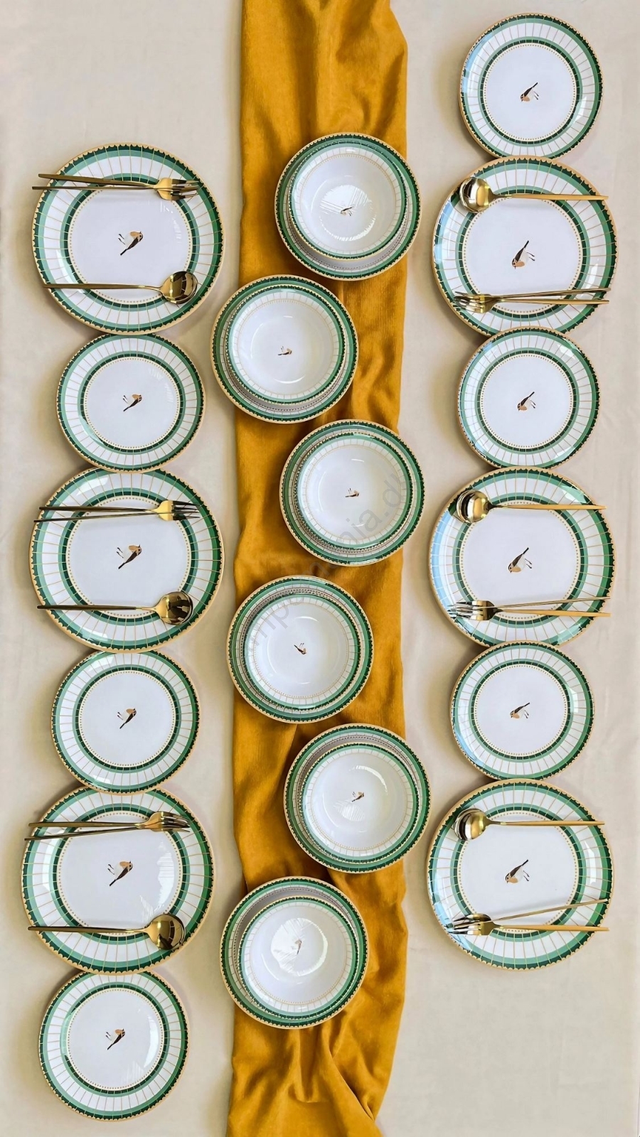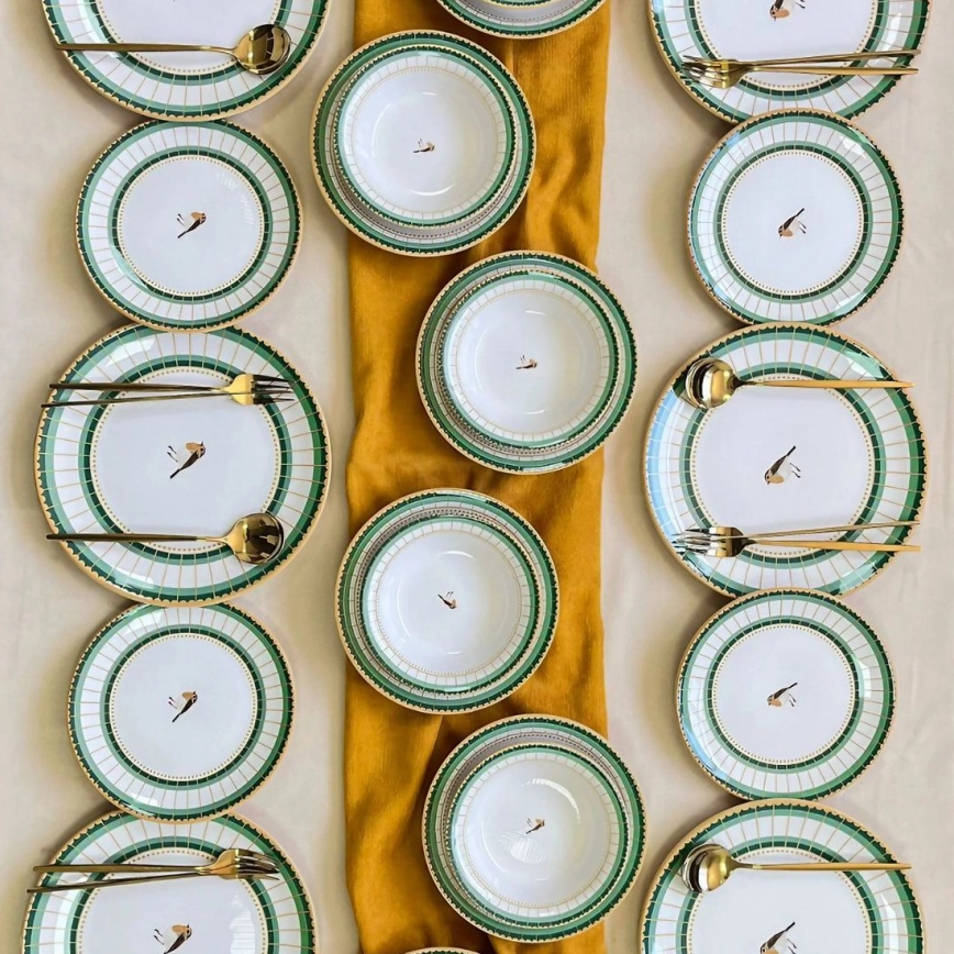 24-delers spisesæt, hvid/grøn/guld, keramik