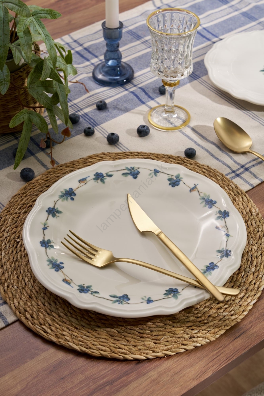 24-delt spisesæt, hvid/blå, porcelæn