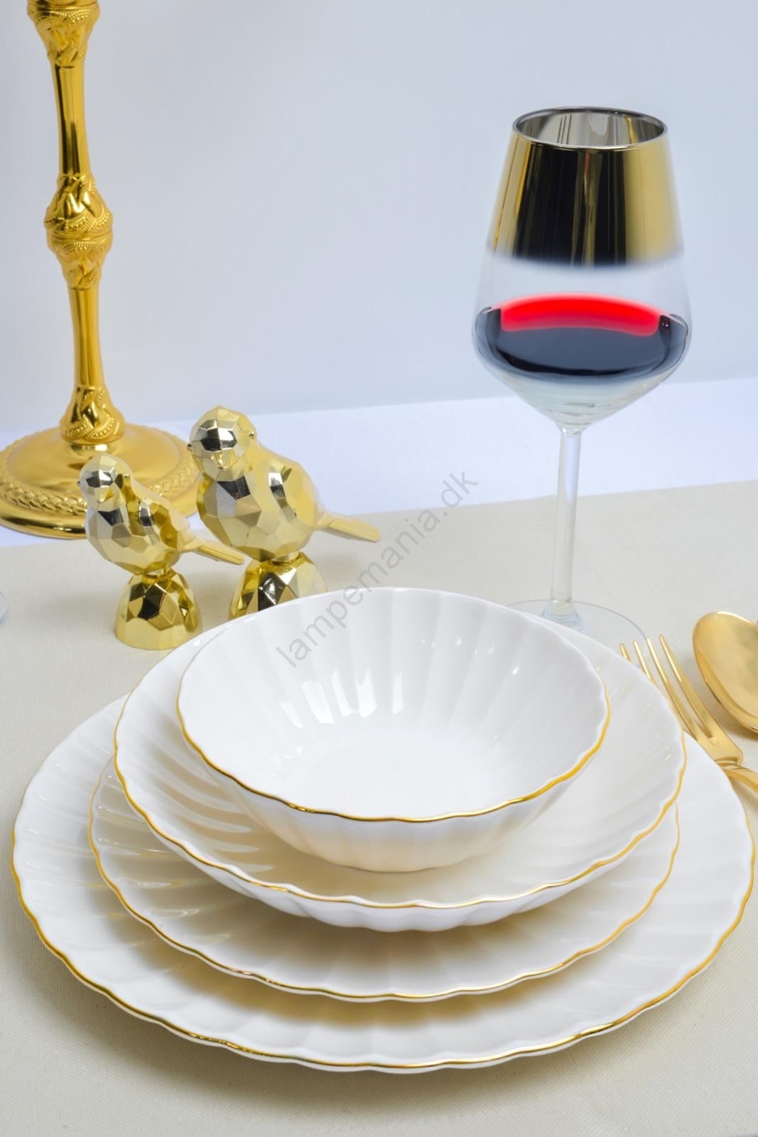• Spisesæt 26 dele hvid/guld/porcelæn