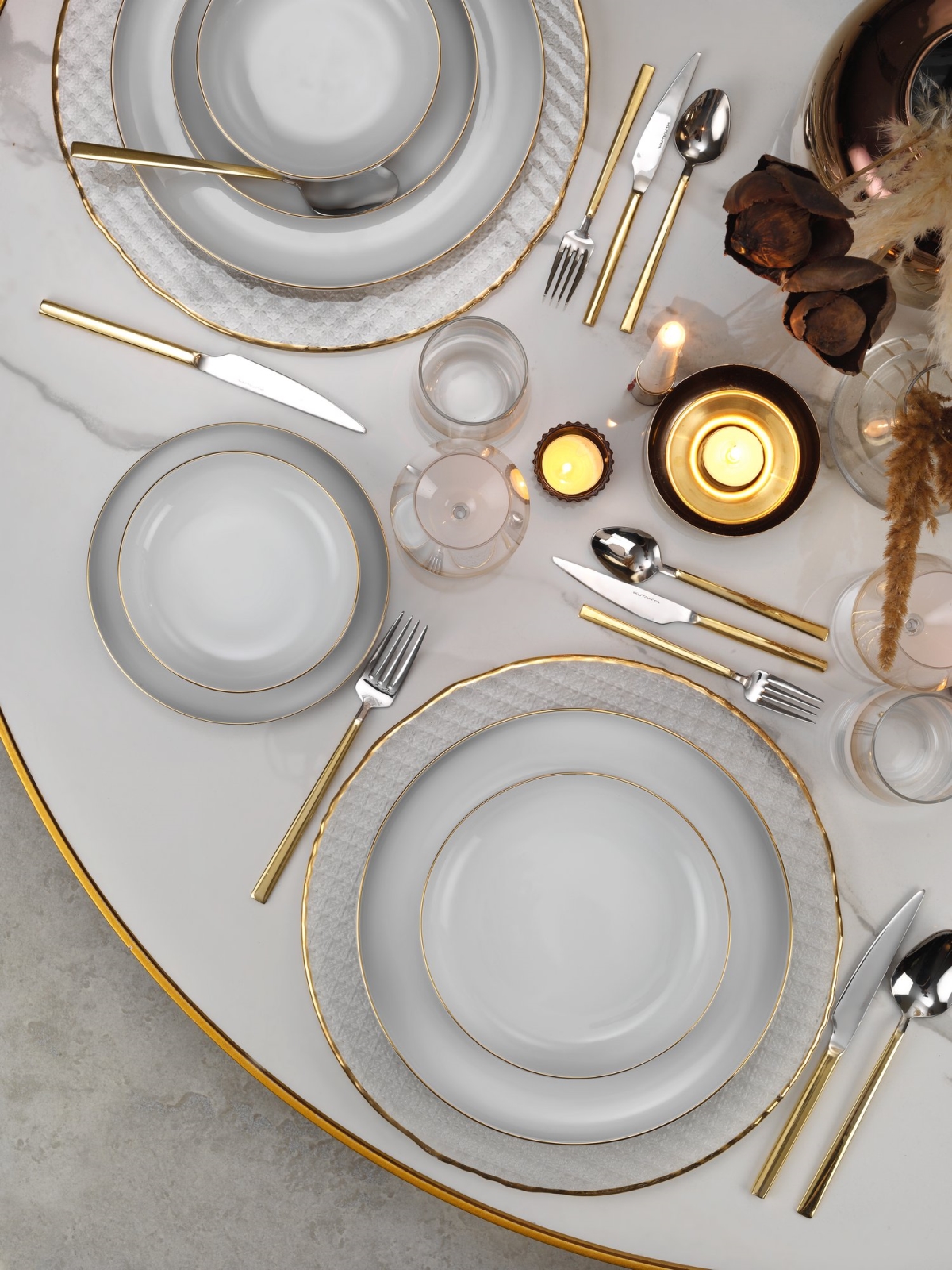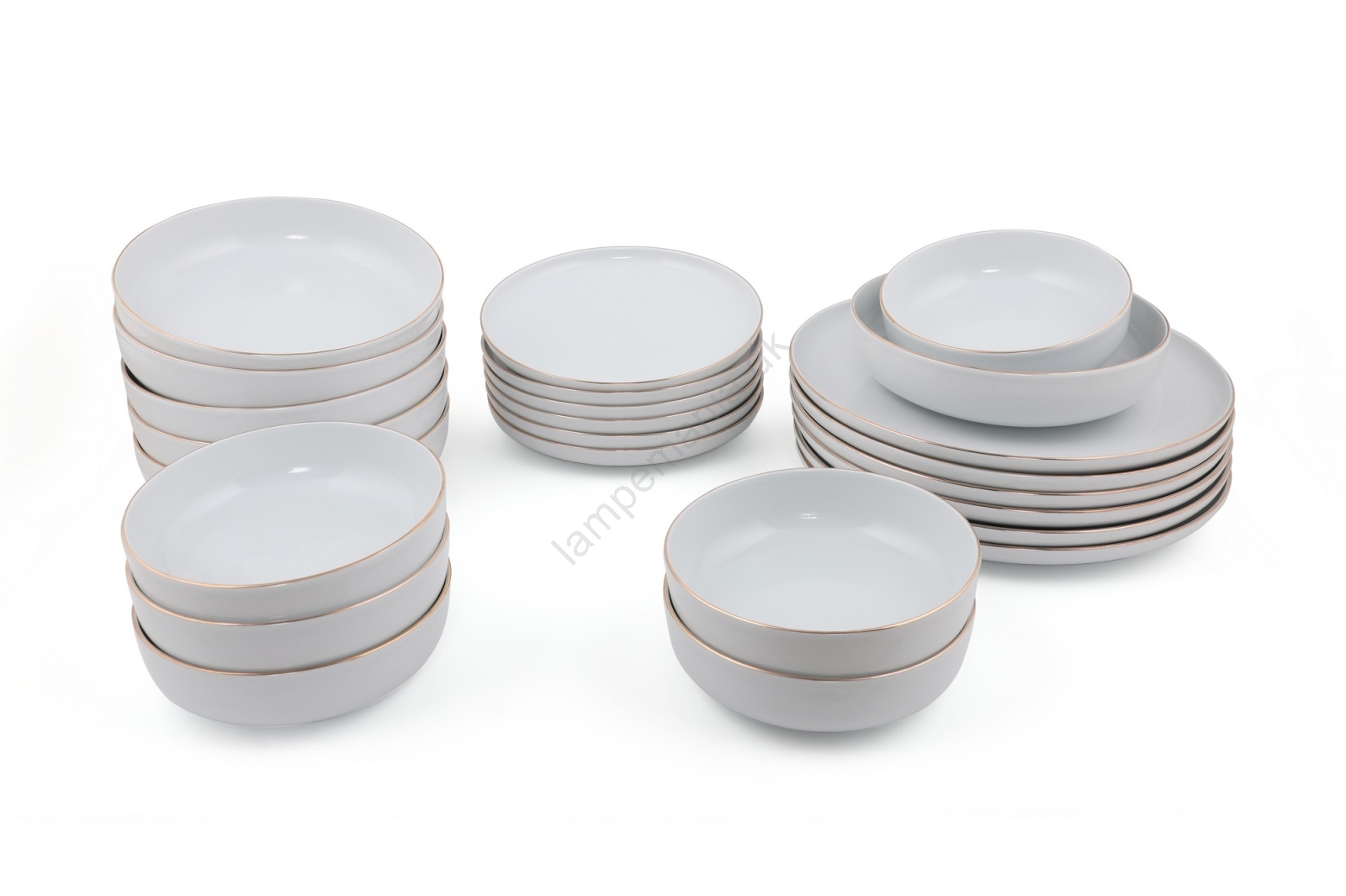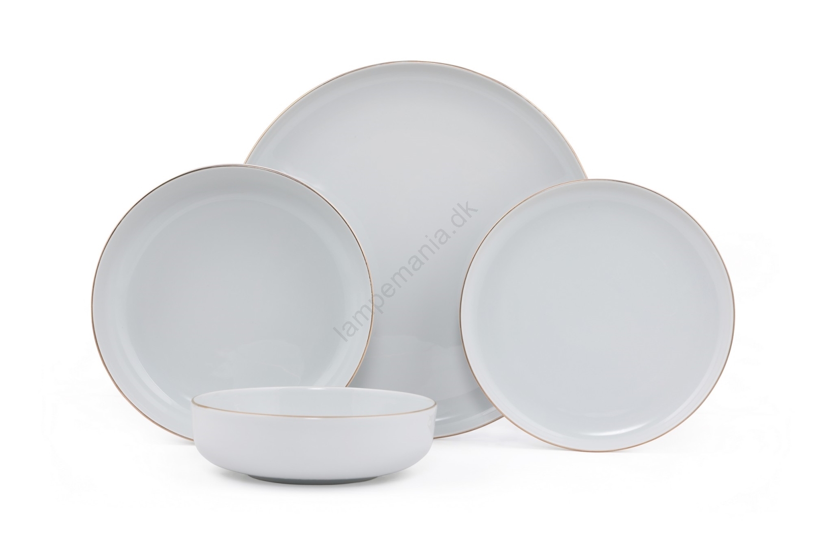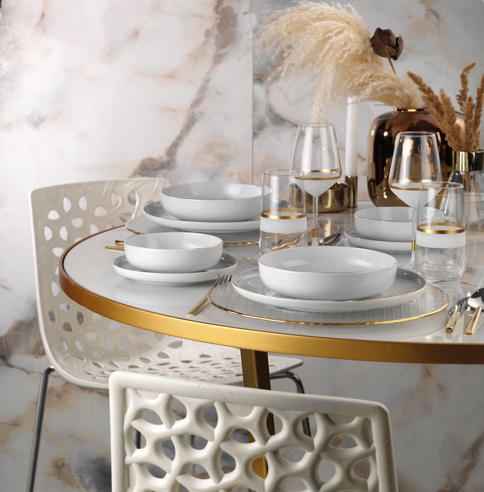 24-delt spisesæt i hvidt porcelæn med gulddetaljer