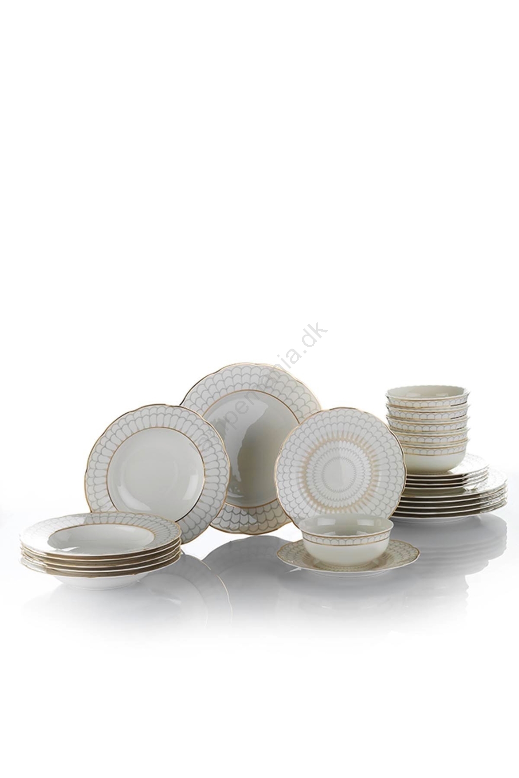24-delt spisesæt i hvidt porcelæn med guldkant