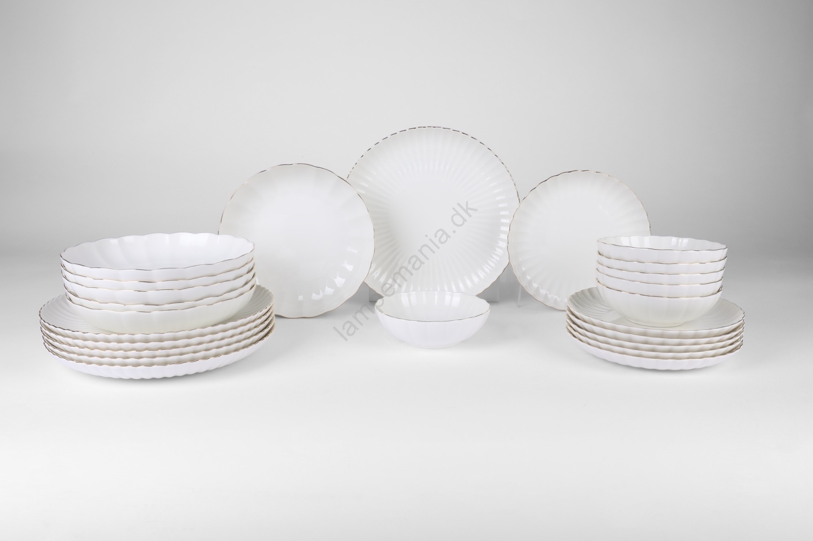24-delt spisesæt i hvidt porcelæn med guldkant