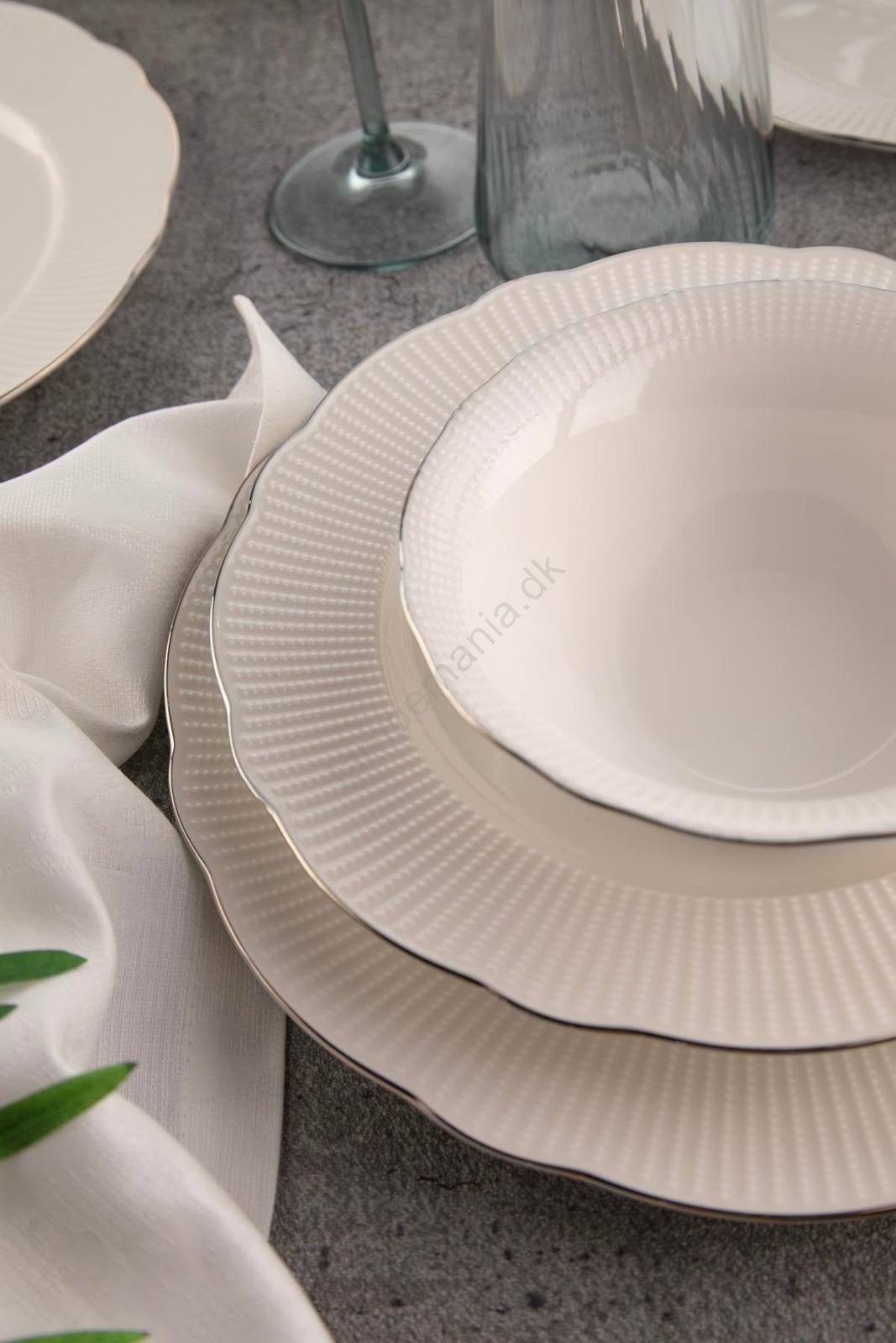 26-delt spisesæt i hvid/sølv/benporcelæn