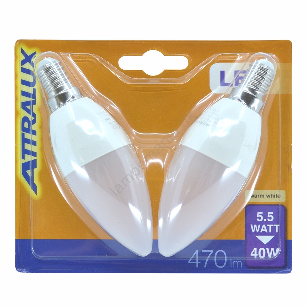 2x LED-pære E14/5,5W/230V 2700K- Attralux Designet i høj kvalitet sikrer perfekt interiørbelysning. E14-kategorien er dedikeret til pærer med samme fatning. I vores webshop finder du almindelige glødepærer eller moderne LED-pærer, som er mere energieffektive og har en længere levetid.