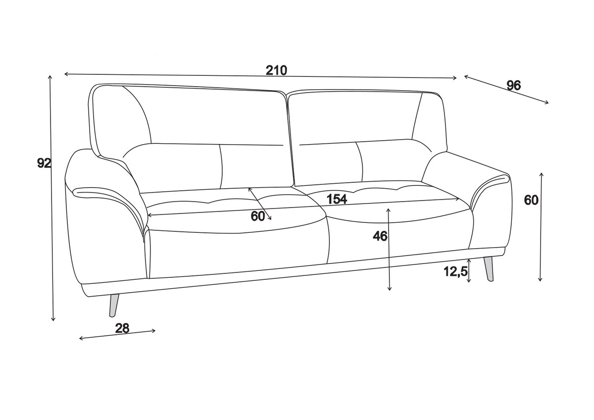 • Tresæders sofaen er kendetegnet ved en komfortabel rygpolstring, som giver fremragende støtte under siddende.