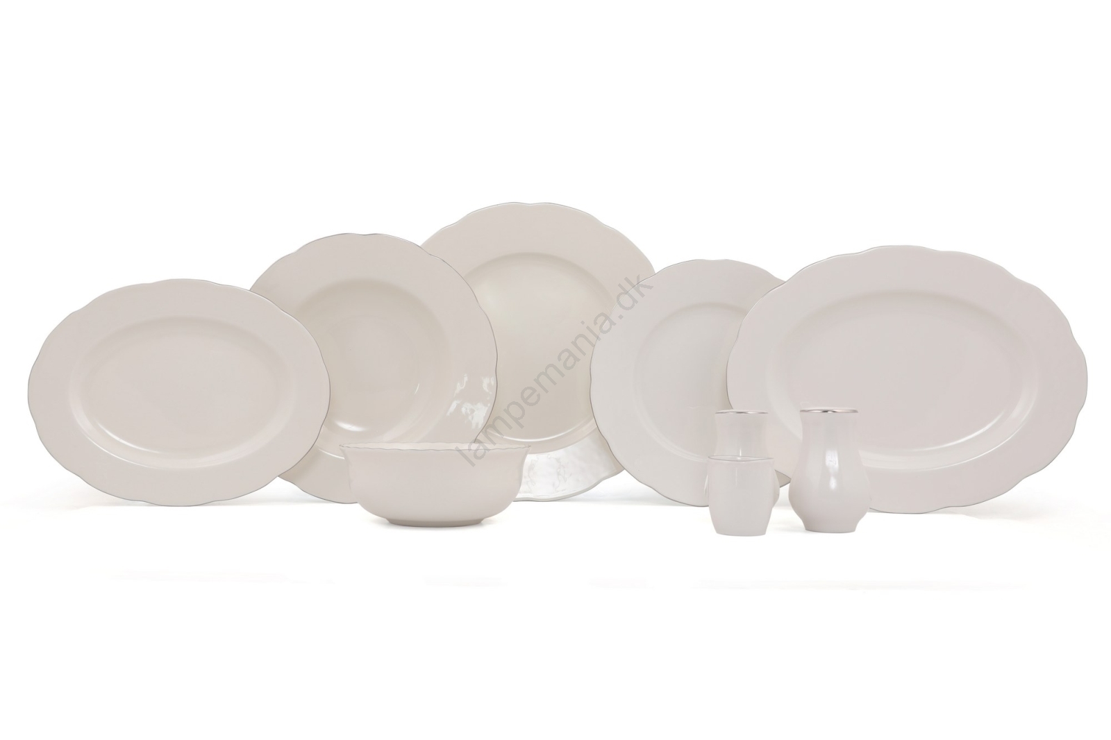 54-delt spisesæt, hvid/sølv/benporcelæn