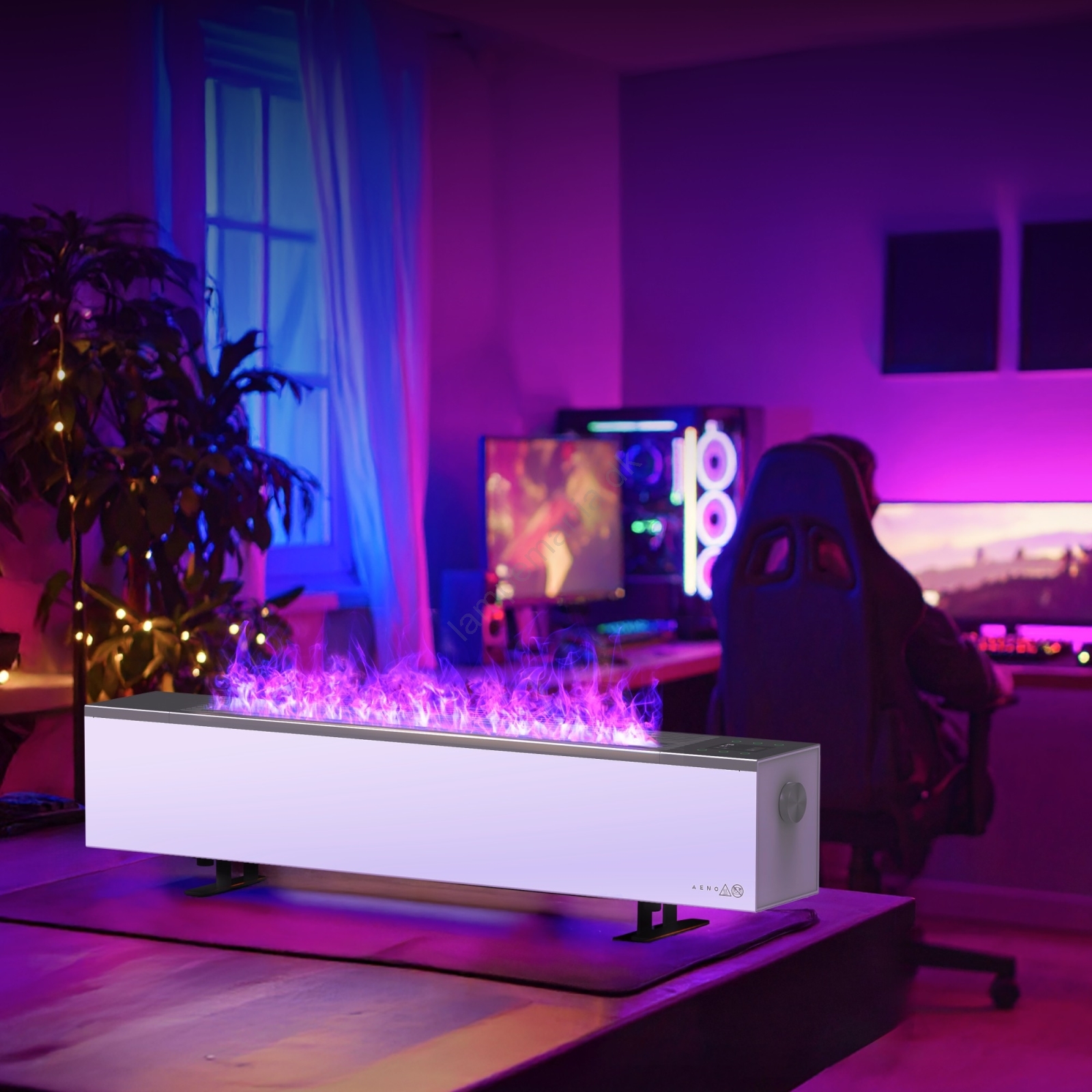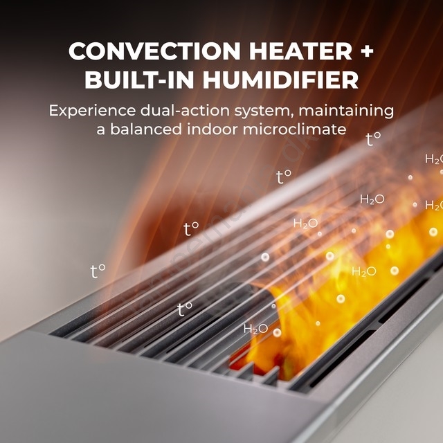 • Har en dekorativ „flamme“-effekt takket være LED-belysning og en tågeeffekt, som skaber en ildlignende atmosfære uden flammer eller røg.