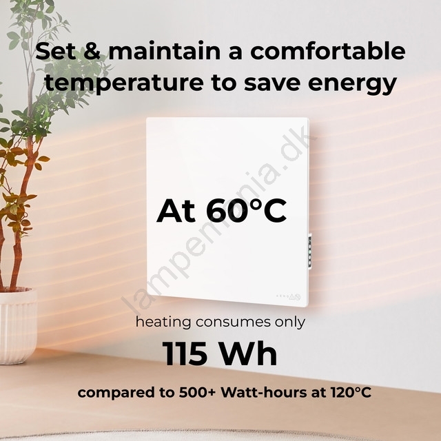 • Med appen AENO kan du styre din varme fra hvor som helst, overvåge energiforbruget og spare op til 50 %.