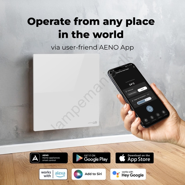 • Med appen AENO kan du styre din varme hvor som helst, overvåge energiforbrug og spare op til 50 %.