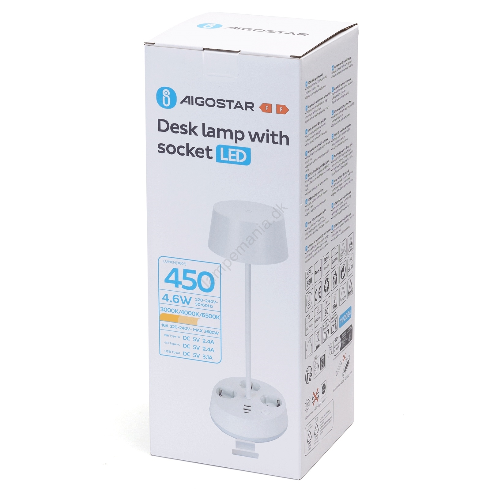 Aigostar - LED dæmpbar bordlampe med stikkontakter og USB LED/4,6W/230V 3000/4000/6500K hvid
