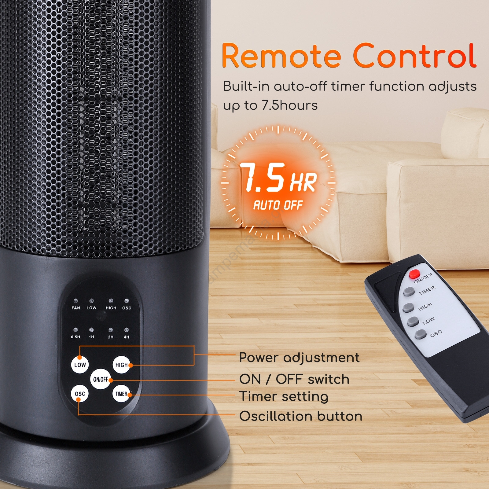 Aigostar - Elektrisk varmeapparat 1500 W/230 V med fjernbetjening
