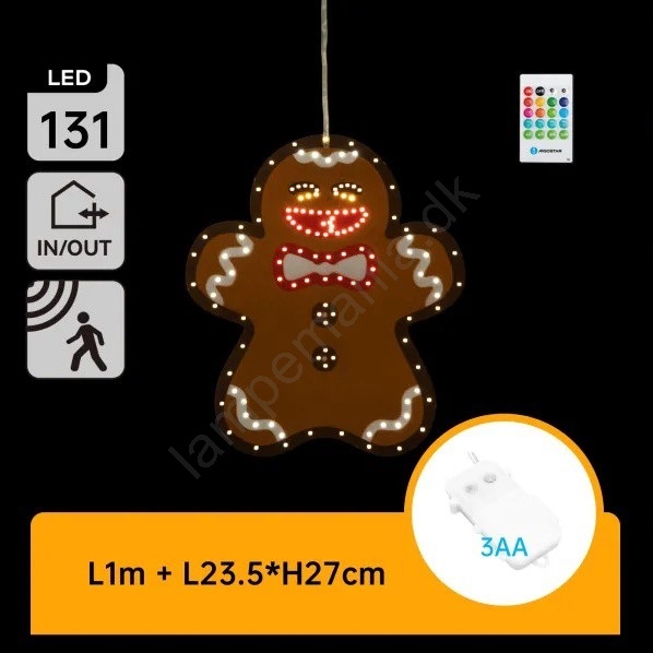 • LED-dekoration til vinduet med design formet som en peberkagefigur.