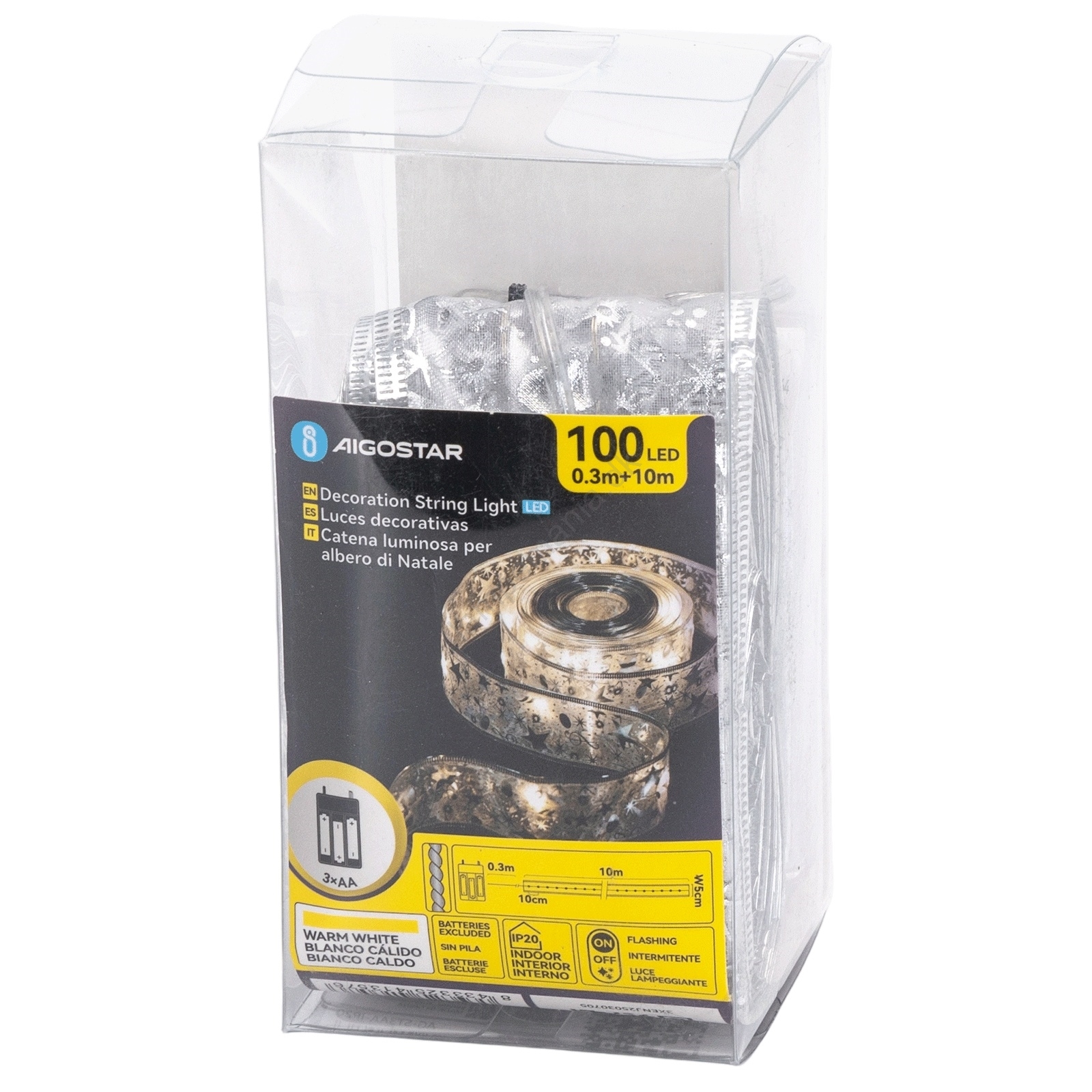 • Aigostar - LED-julelyskæde 100xLED/3xAA 10 m varm hvid sølvfarvet