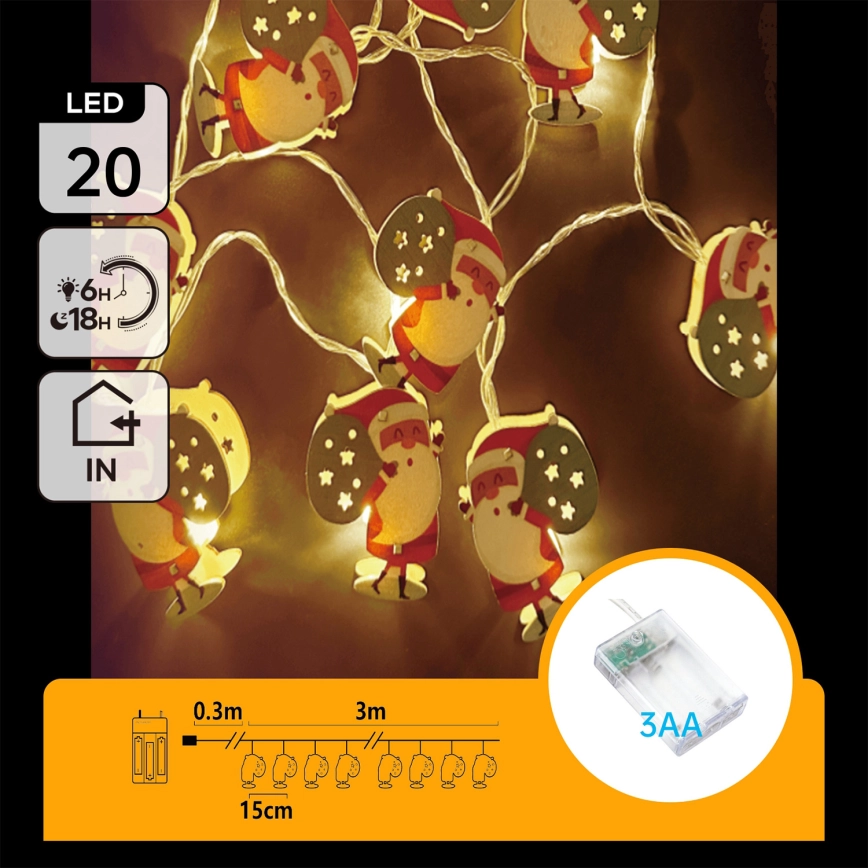 Aigostar - LED-lyskæde 20xLED/3xAA, 3 m, varm hvid, Julemand