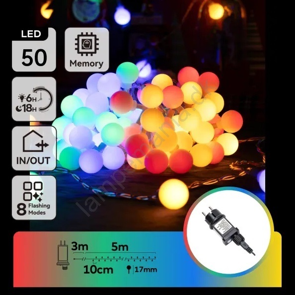Aigostar - Udendørs dekorationslyskæde, 50 LED, 8 funktioner, 5 m, IP44, multifarvet
