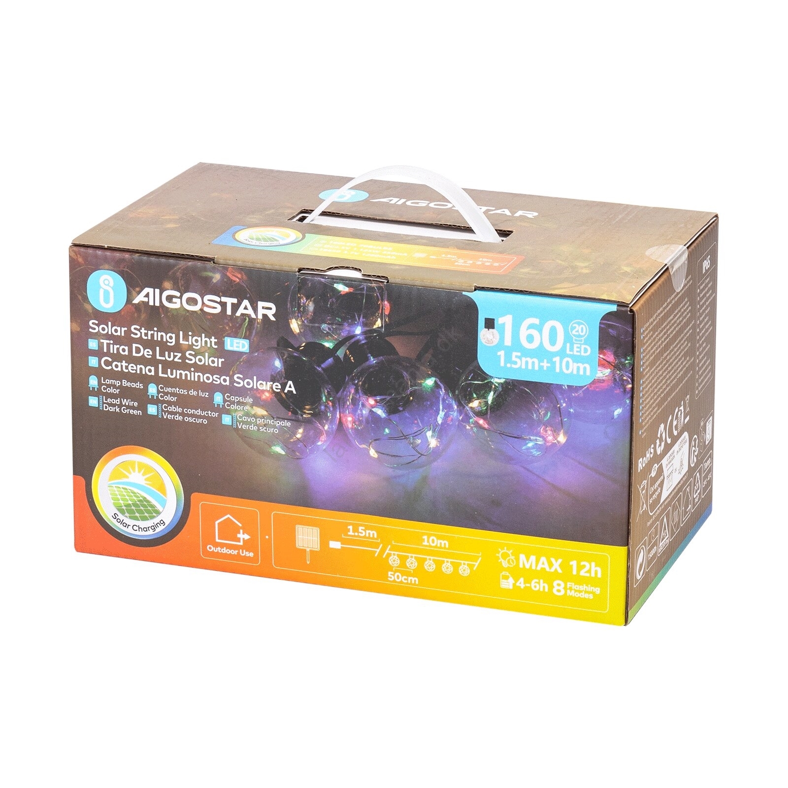 Aigostar - LED solcellelyskæde 20xLED/8 funktioner 11,5m IP65 multifarvet