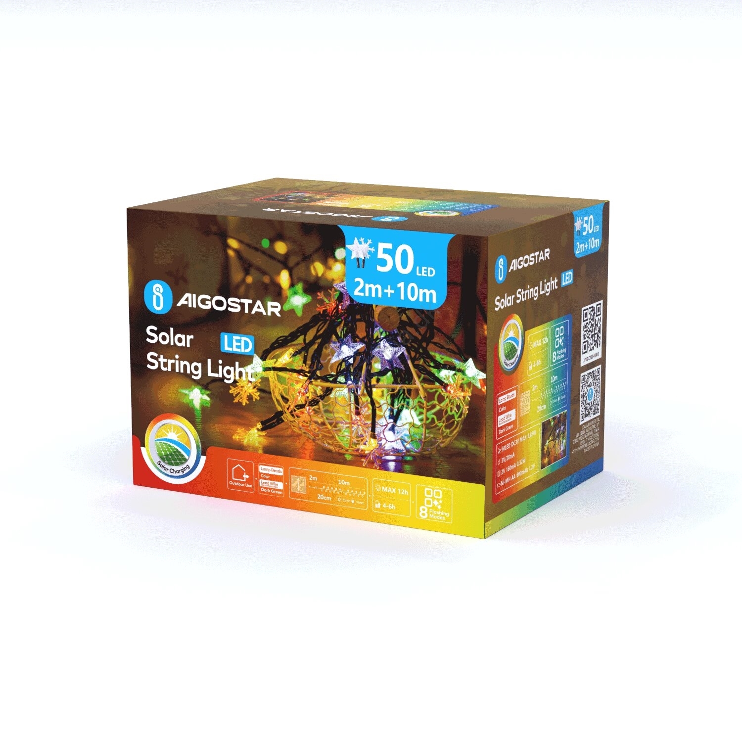 • Aigostar - LED Solcelle julelyskæde 50xLED/8 funktioner 800 mAh 12m IP65 multicolor