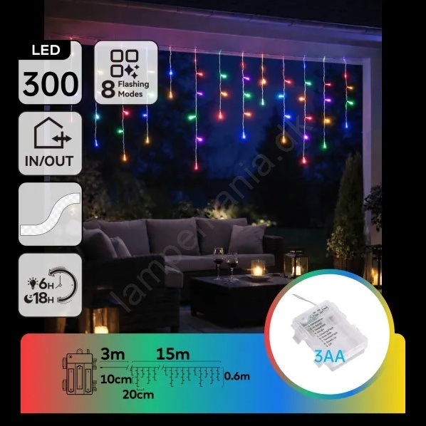 Aigostar - LED udendørs julelyskæde 300 LED / 8 funktioner 3x AA 18 x 0,6 m IP44 multifarvet