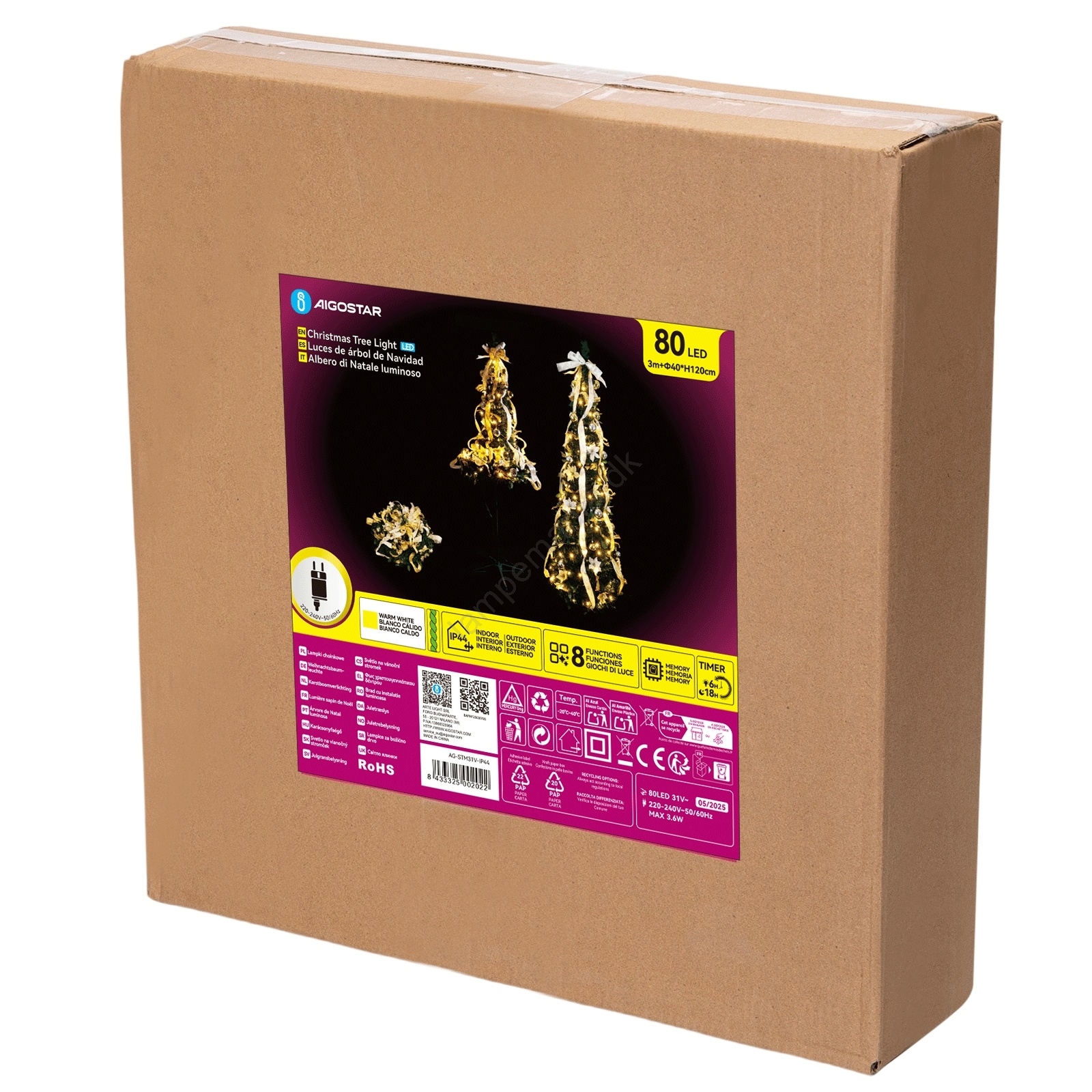 Aigostar - LED udendørs juletræ 80 LED, 1,2 m, IP44, hvid/guld, varm hvid