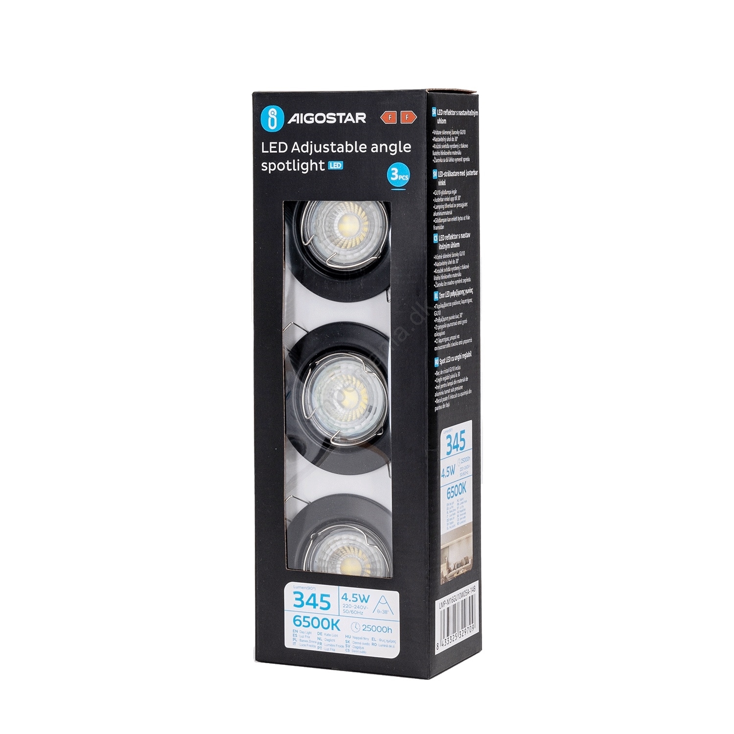 • Aigostar - Sæt med 3 LED-indbygningsspots 1xGU10/4,5W/230V 6500K sort