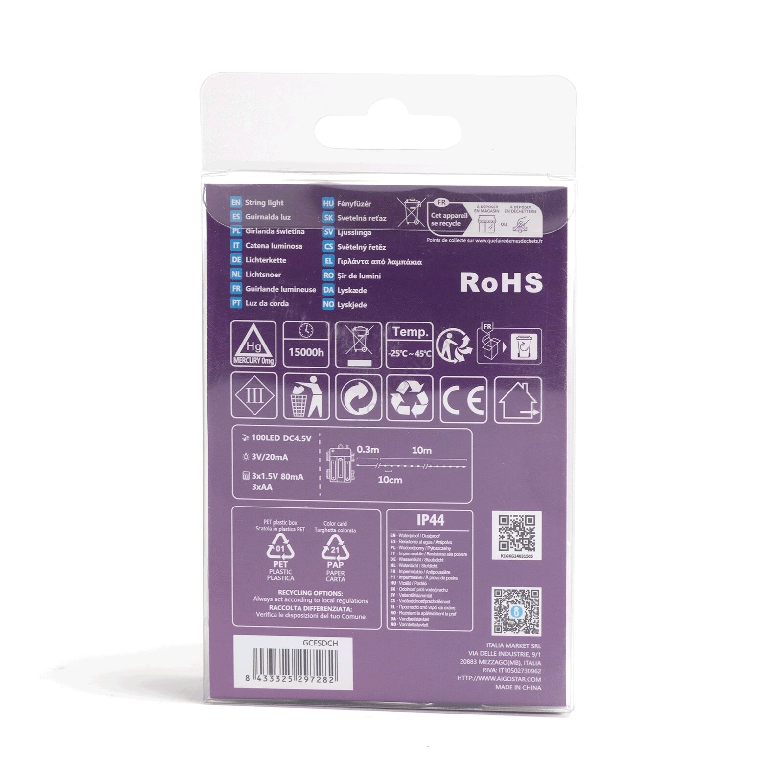 Aigostar - LED Udendørs lyskæde 100xLED/8 funktioner/3xAA10,3m IP44 multifarvet