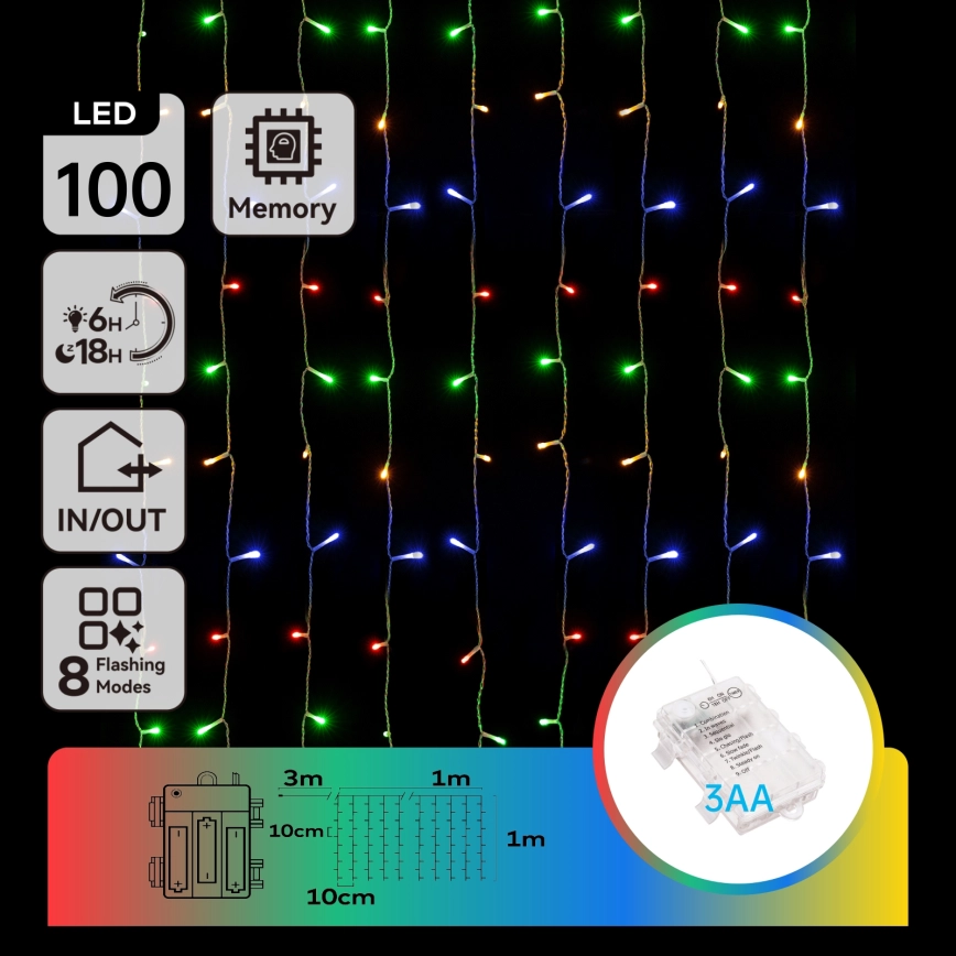 Aigostar - LED Udendørs Julelys Kæde 100xLED/8 funktioner 3xAA 4x1m IP44 multifarvet