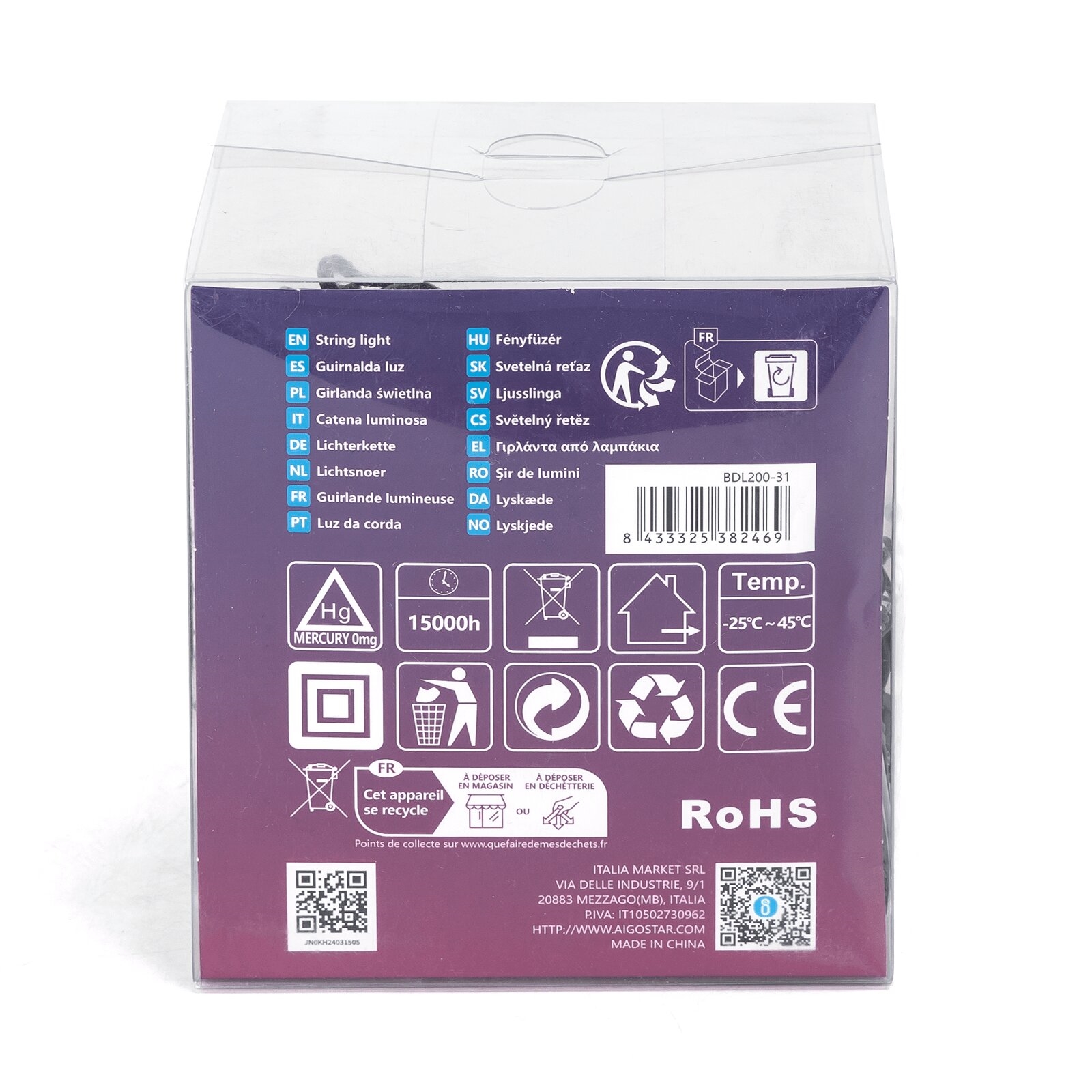 • Aigostar - Dekorativ udendørs LED-lyskæde, 100 LED, 8 funktioner, 10 m, IP44, varm hvid