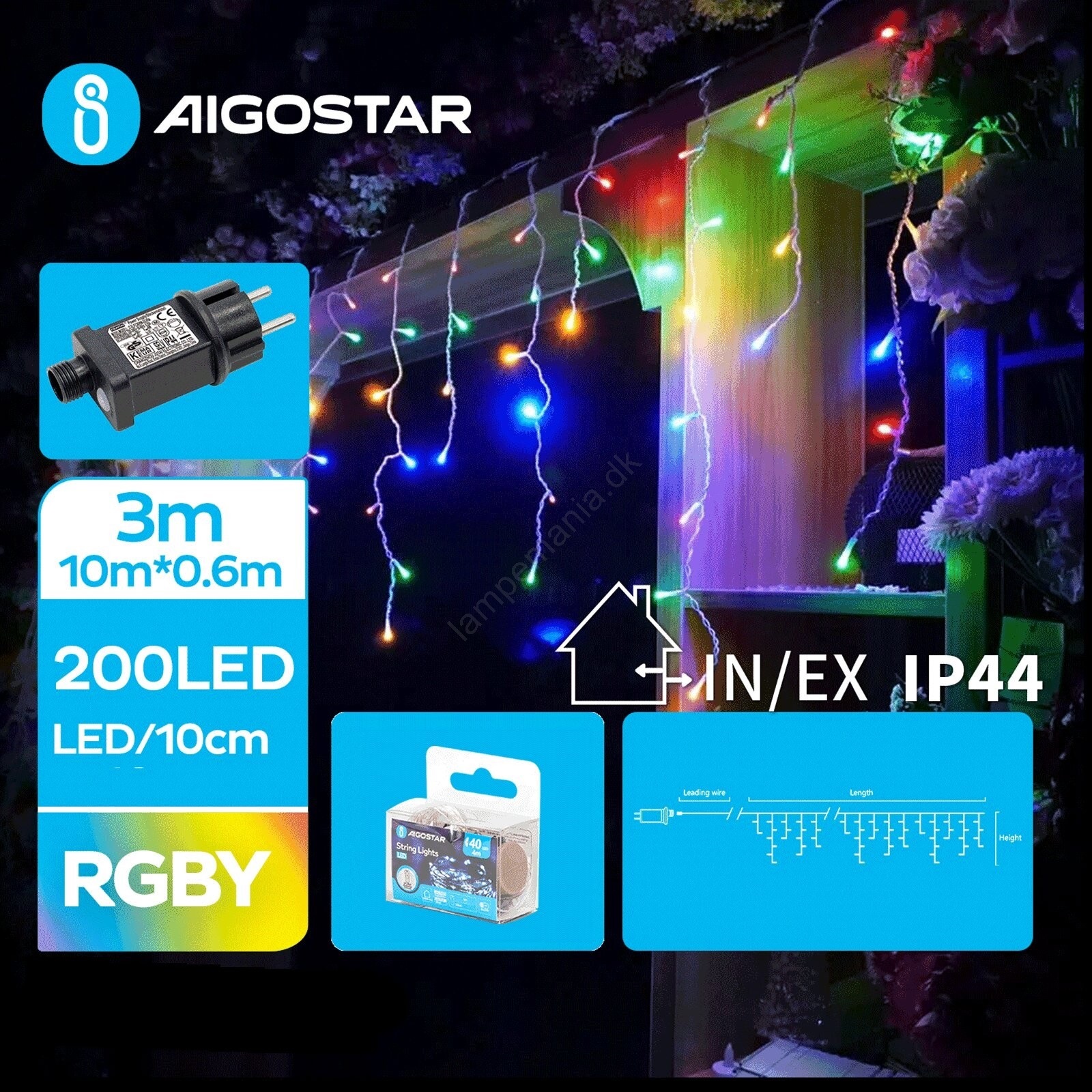 Aigostar - LED udendørs julelyskæde 200xLED/8 funktioner 13x0,6m IP44 multifarvet