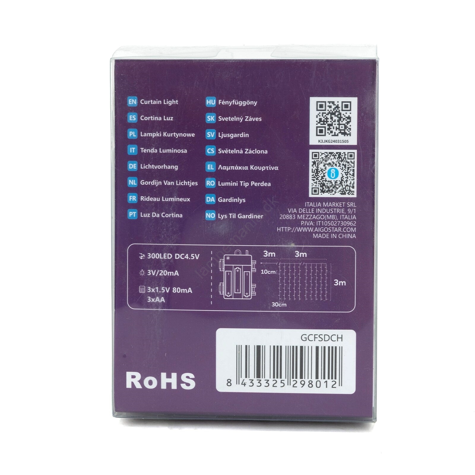 Aigostar-LED Udendørs julelyskæde 300xLED/8 funktioner 3xAA 6x2m IP44 kold hvid