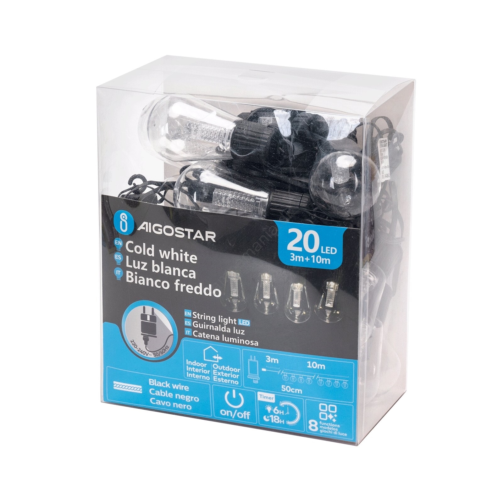 Aigostar - LED udendørs dekorationskæde 20xLED/13m IP44 kold hvid