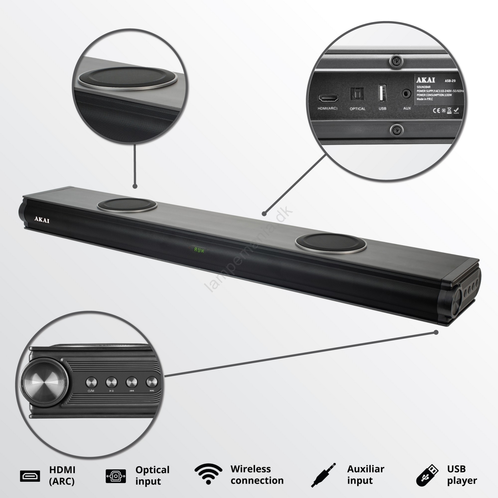 AKAI ASB-29 - Soundbar med aktiv subwoofer 120W/230V + fjernbetjening