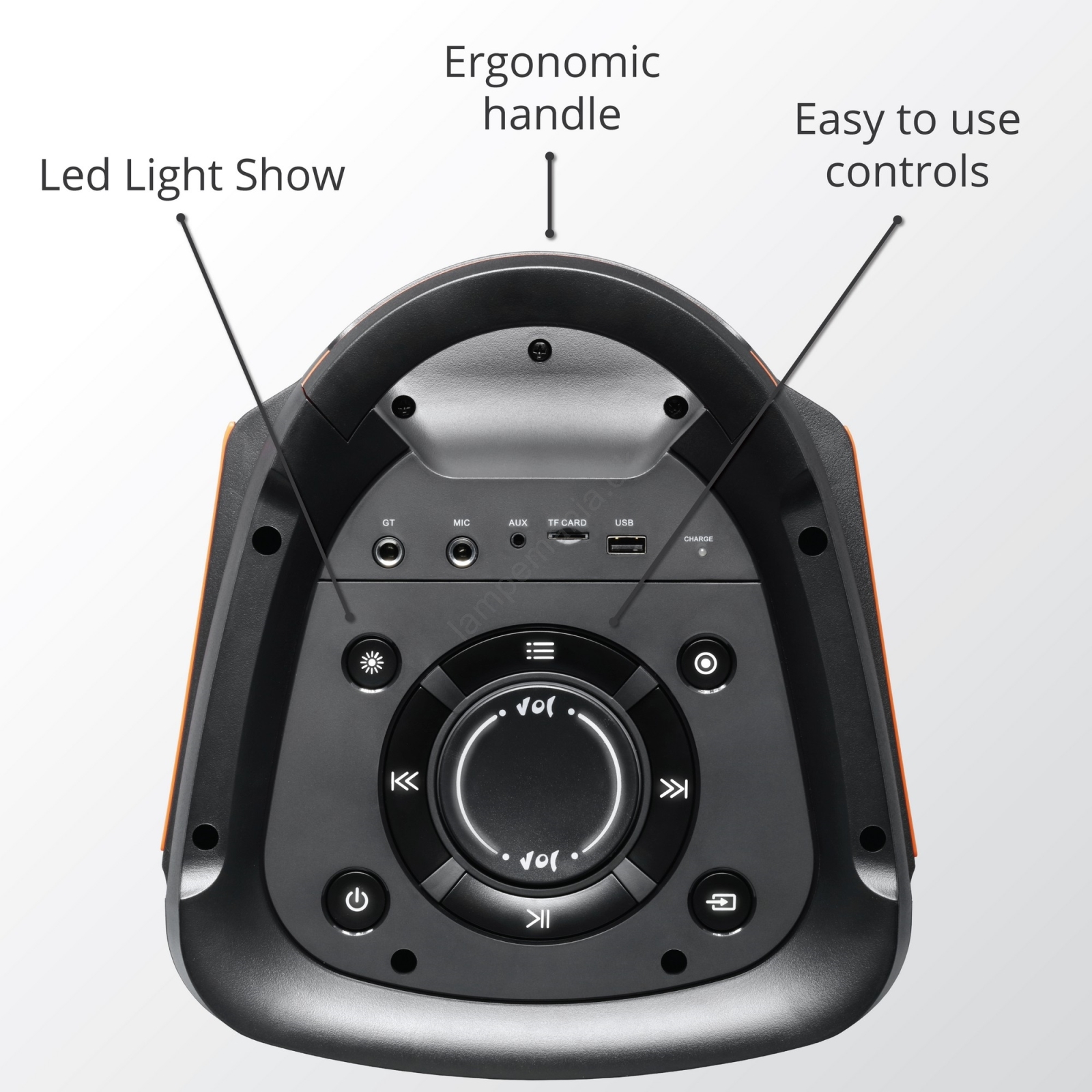 • Højttaleren har indgange til guitar og mikrofon.