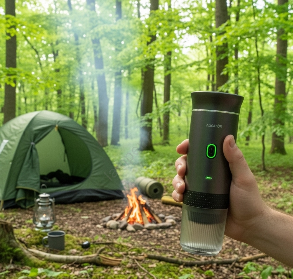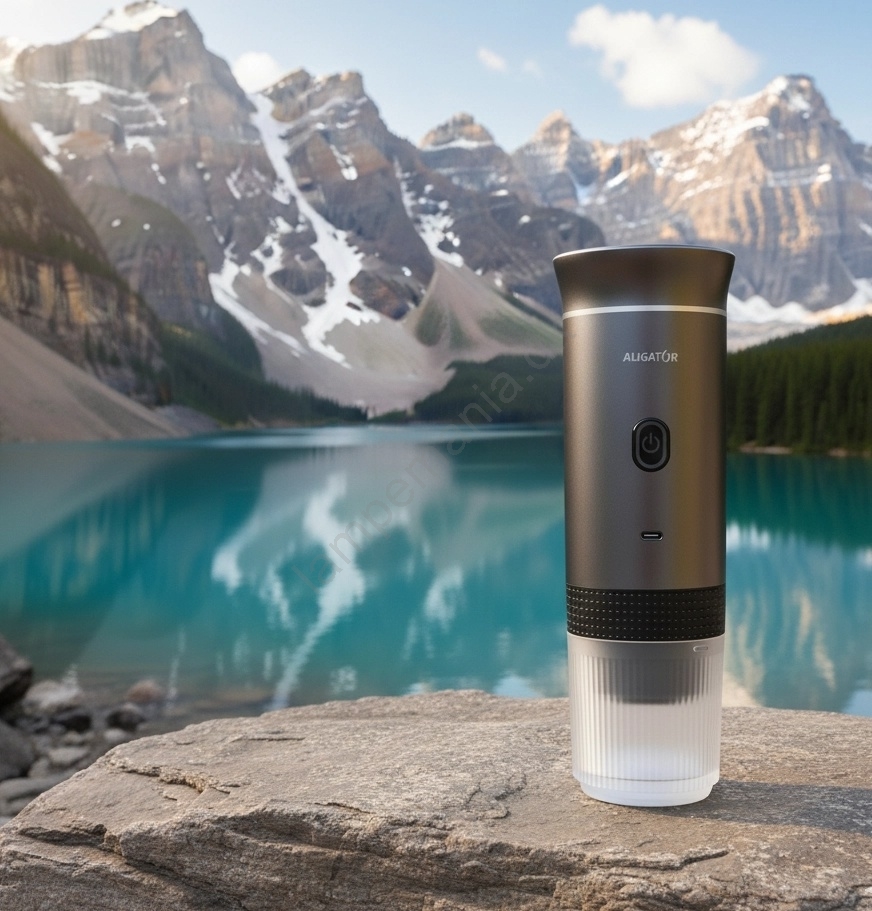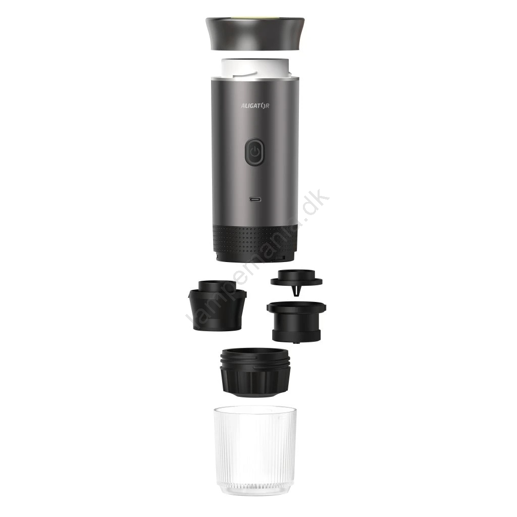 Aligator ACM002 - PortaCaffé 3-i-1 genopladelig rejsekaffemaskine 72 W/7500 mAh grå