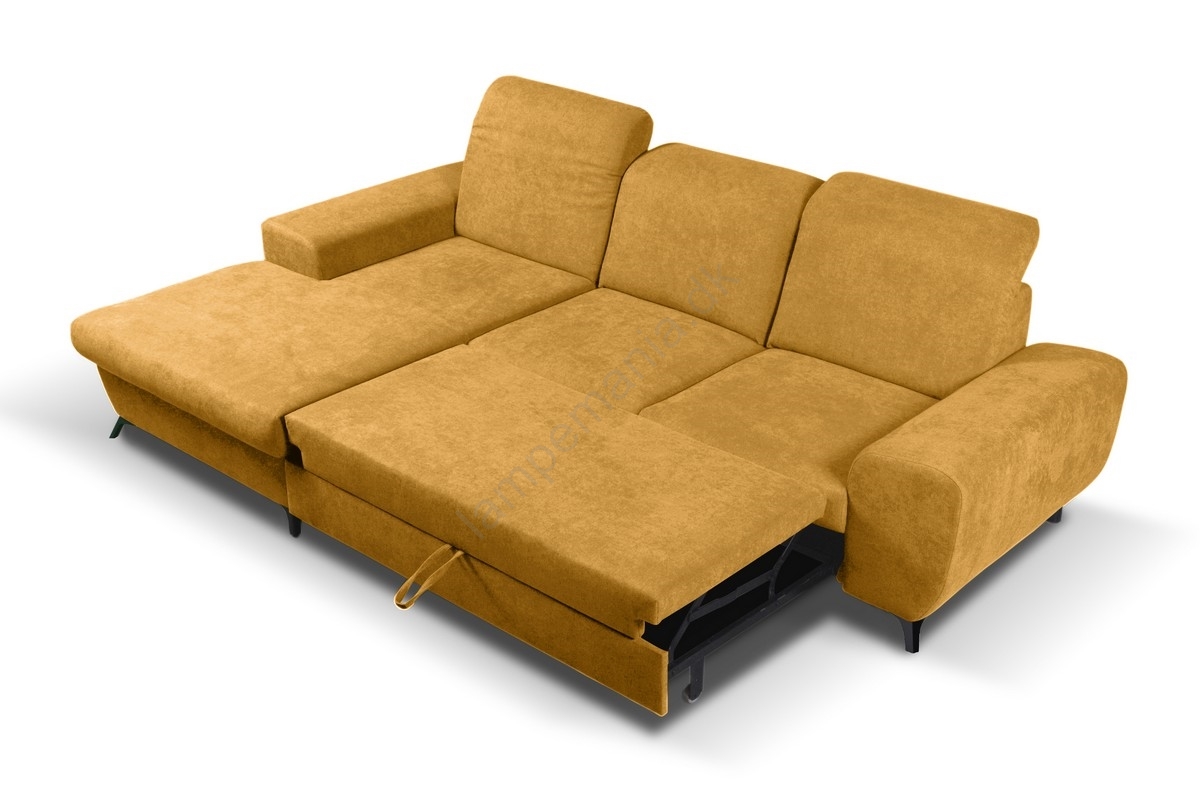 • Udtrækbar polstret L-formet hjørnesofa med opbevaringsrum ALTA, venstrevendt, gul
