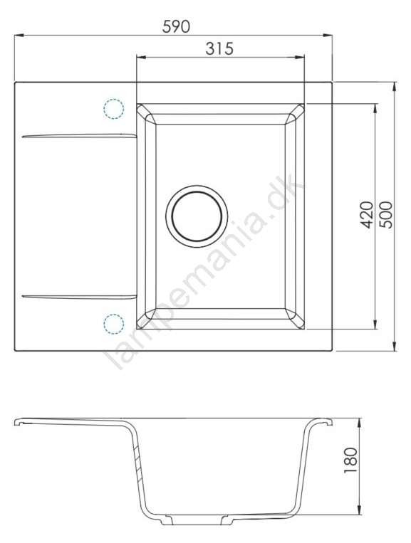 • Overløb placeret i vaskens skål.