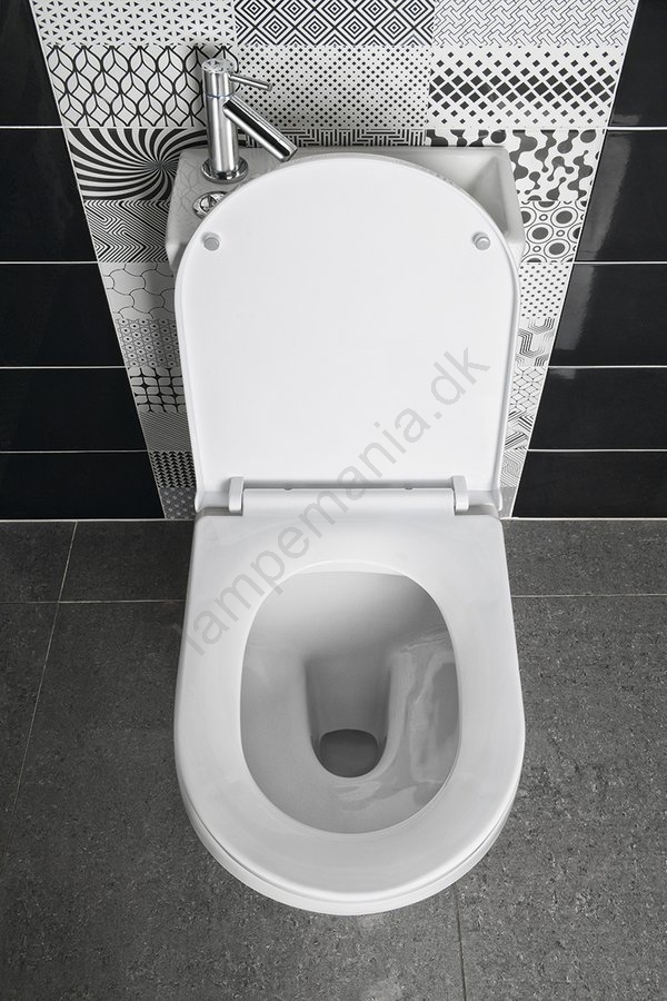 • Ved at placere håndvasken oven på cisternen spares vand, da vandet fra håndvasken løber direkte ned i cisternen.