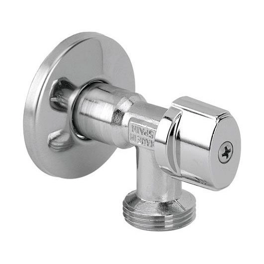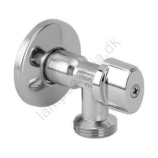 • Vaskemaskineventil i messing med krombelagt overflade.