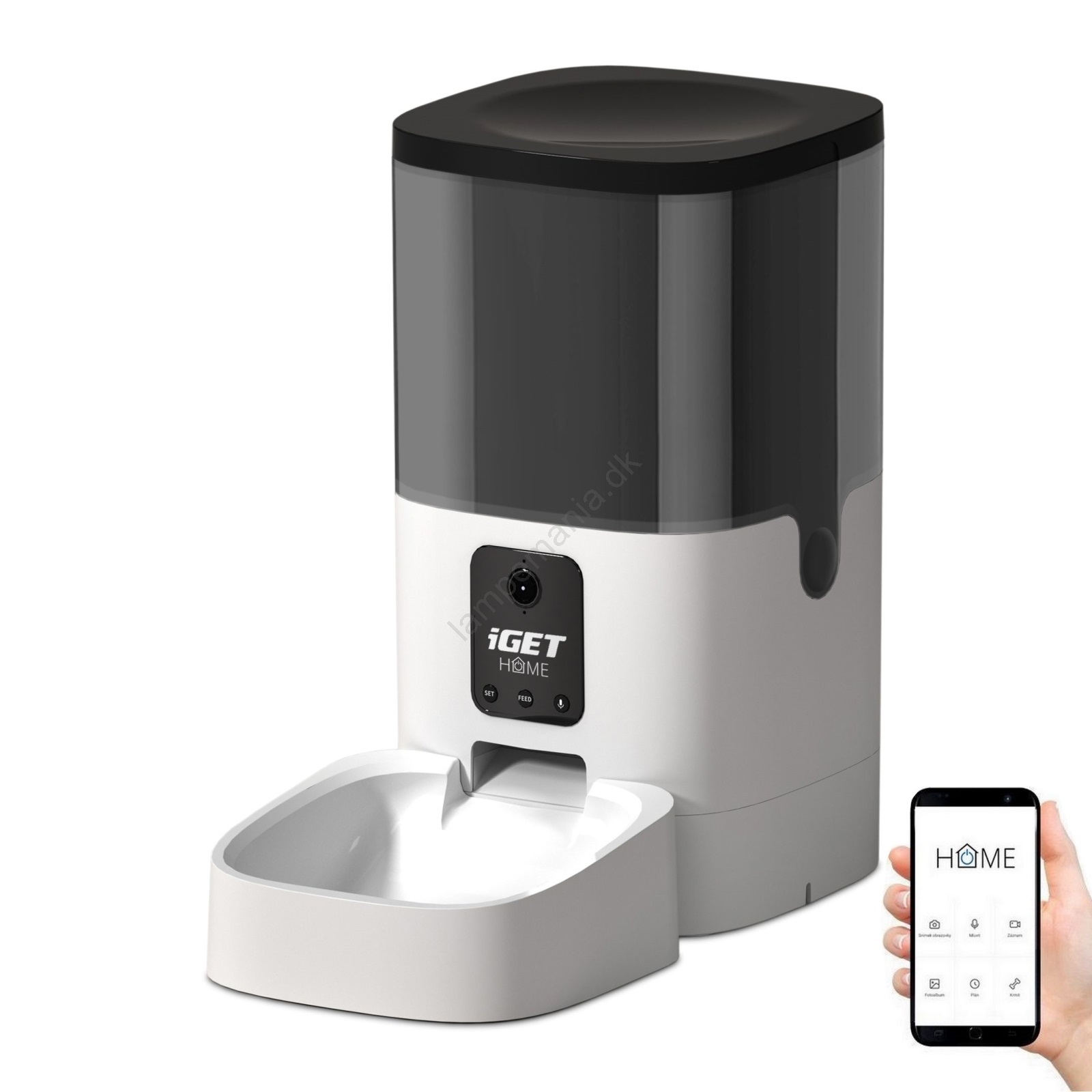 • Portionsstørrelse, udleveringstidspunkt og hyppighed kan nemt indstilles via den smarte iGET HOME-app direkte på din mobiltelefon (kræver Wi-Fi signal).
