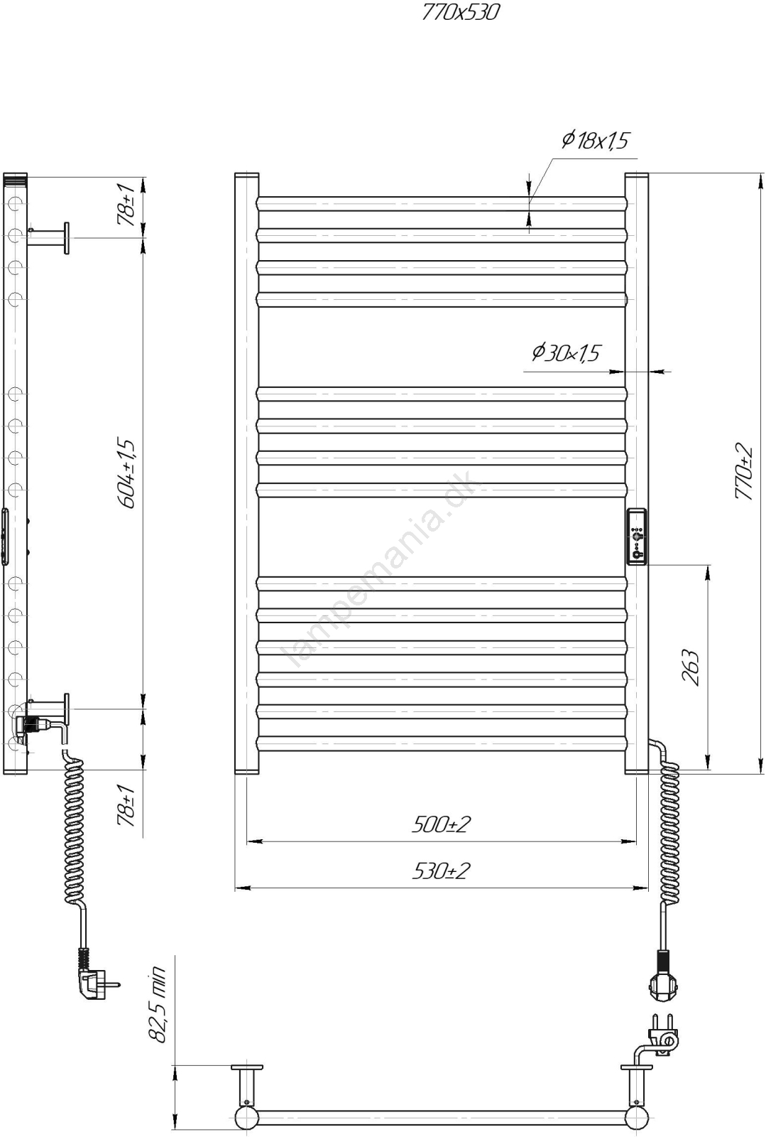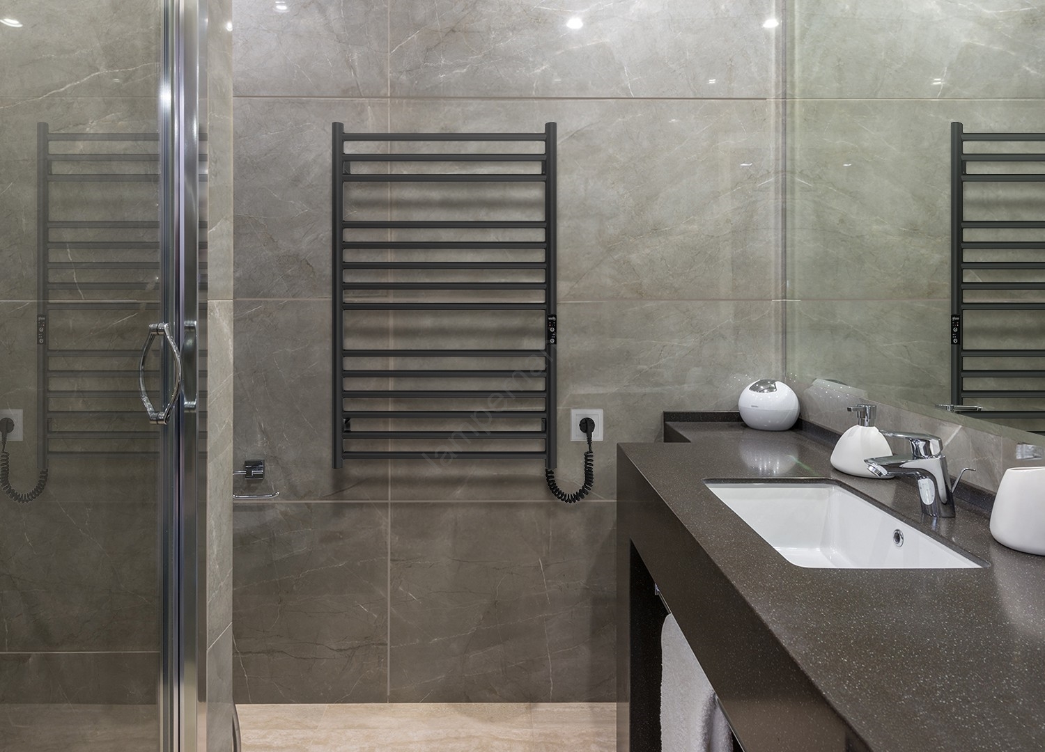 Badeværelses håndklædetørrer HF GREENWICH 170W/230V 77x53 cm, sort, højre, rund
