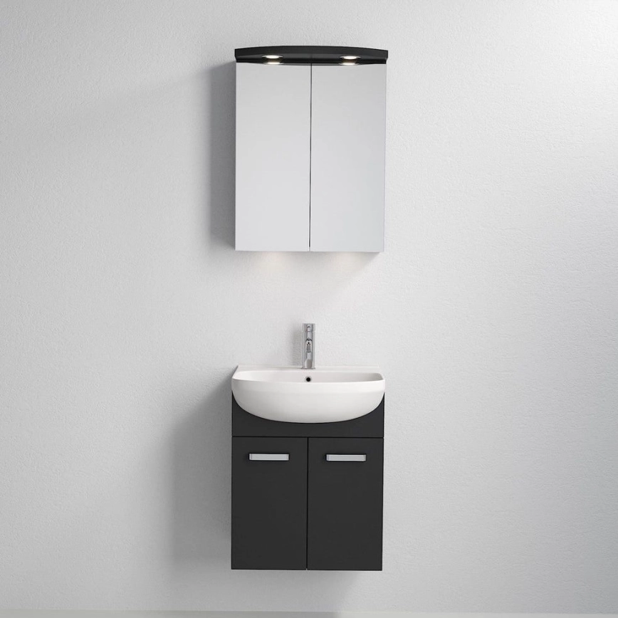 Badeværelsesskab med håndvask Vang + LED-spejlskab 230V IP44 sort