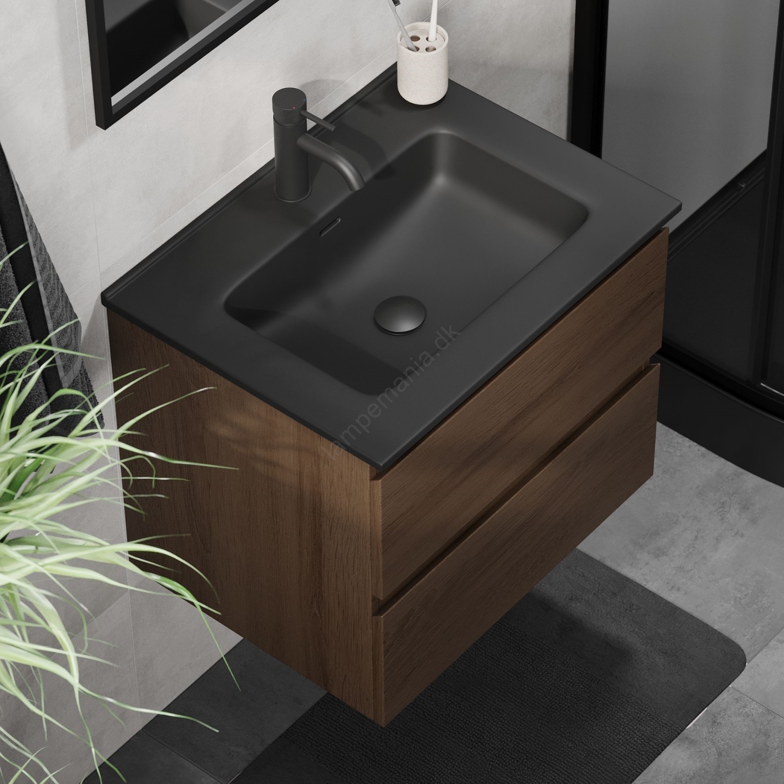 • Badeværelsesskab med håndvask KENWOOD 61 cm valnød/sort