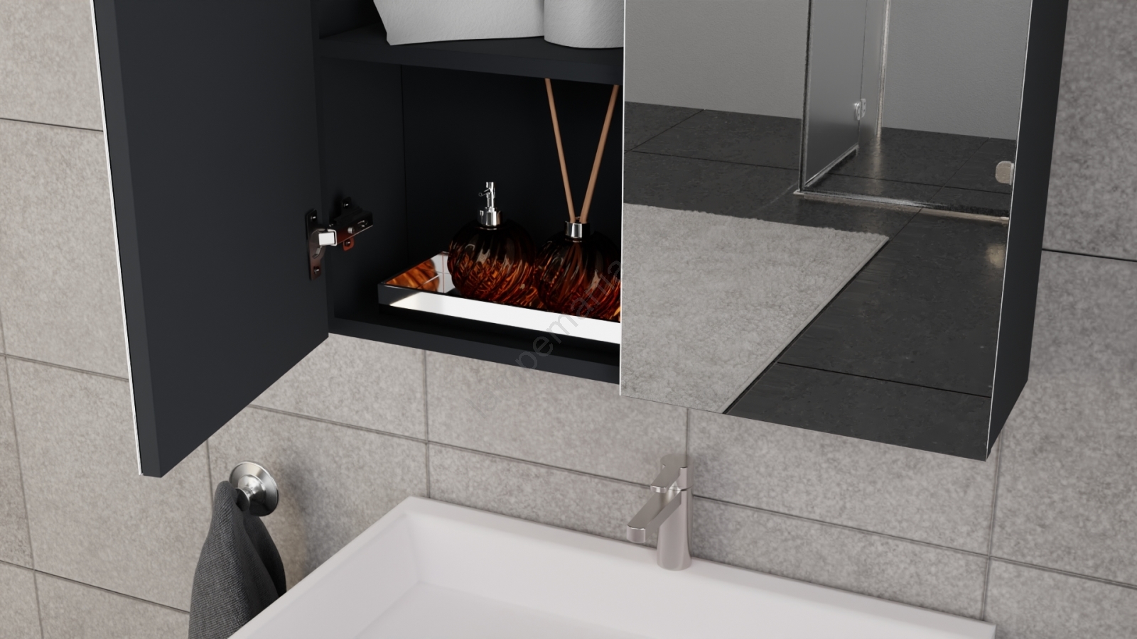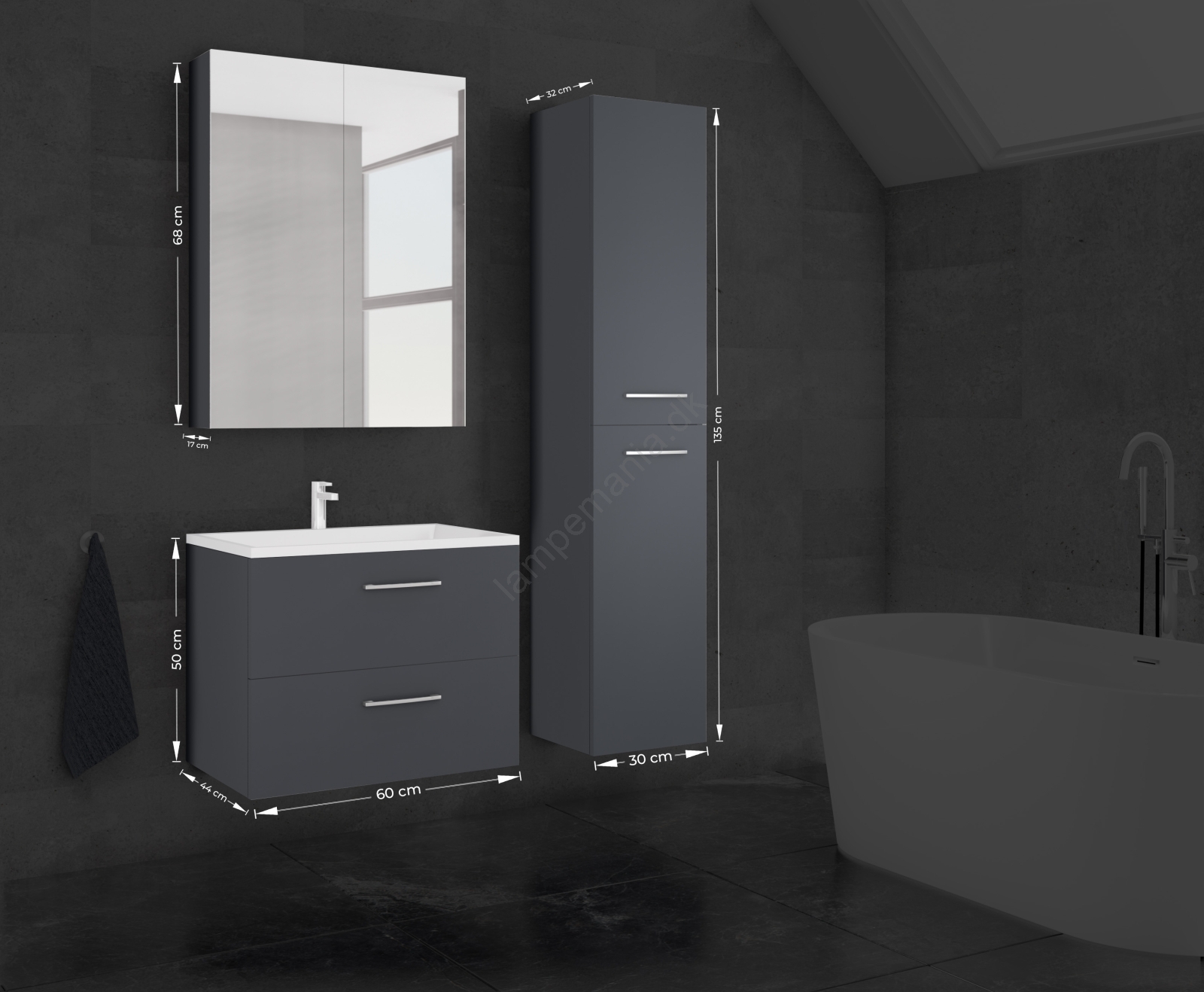 • Badeværelsesskab med vask KATE + spejlskab + vægskab i antracit