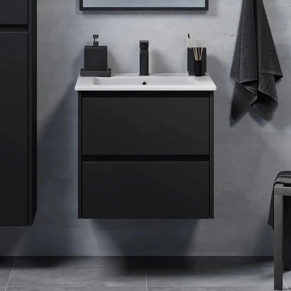 • Badeværelsesskab med håndvask MOLDE 60 cm, sort