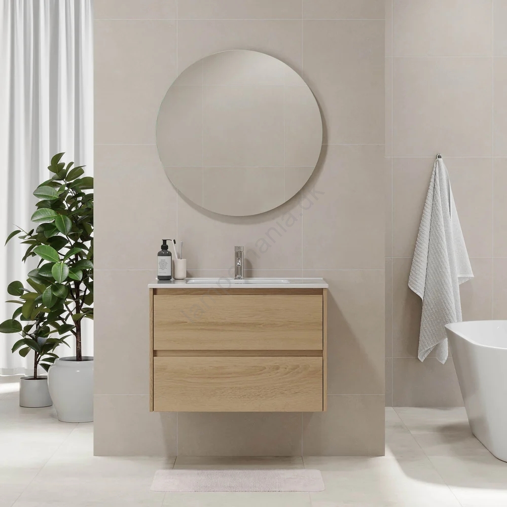 • Badeværelsesskab med vask LYKE 80 cm, egetræ