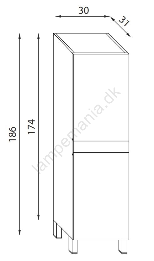 • Skabet kan monteres på væggen eller stå på en plan overflade. (4 ben medfølger.)