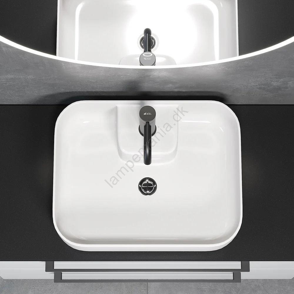 • Vasken er beregnet til montering på bordpladen, hvilket giver fleksibel placering og mulighed for kombination med forskellige typer badeværelsesbordplader.