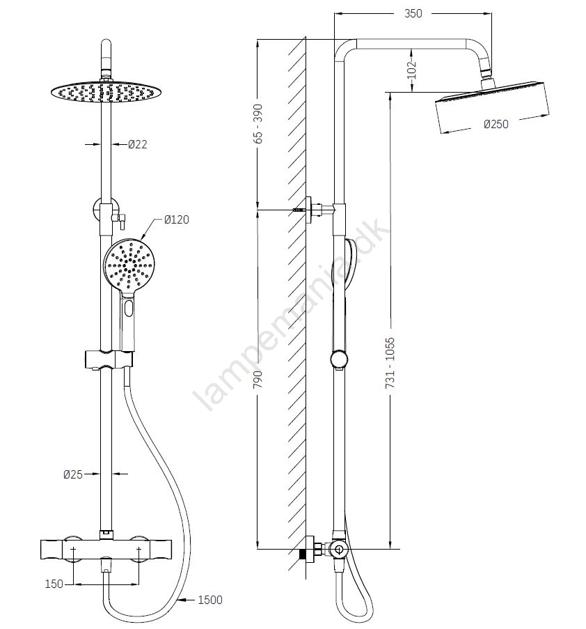 • Sættet består af et termostatisk bruserarmatur i massivt messing.