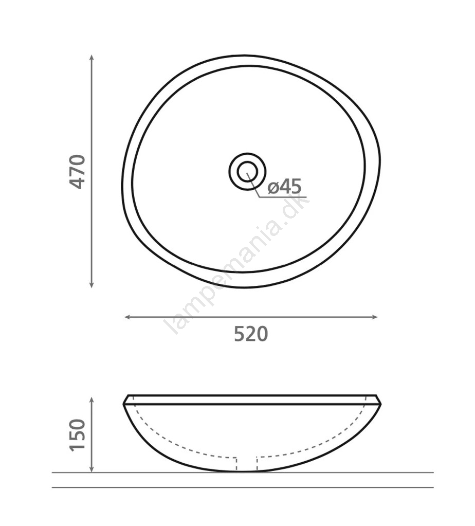 Bathco 00393 - Håndvask til bordplade RIO 52x47 cm sten/grå
