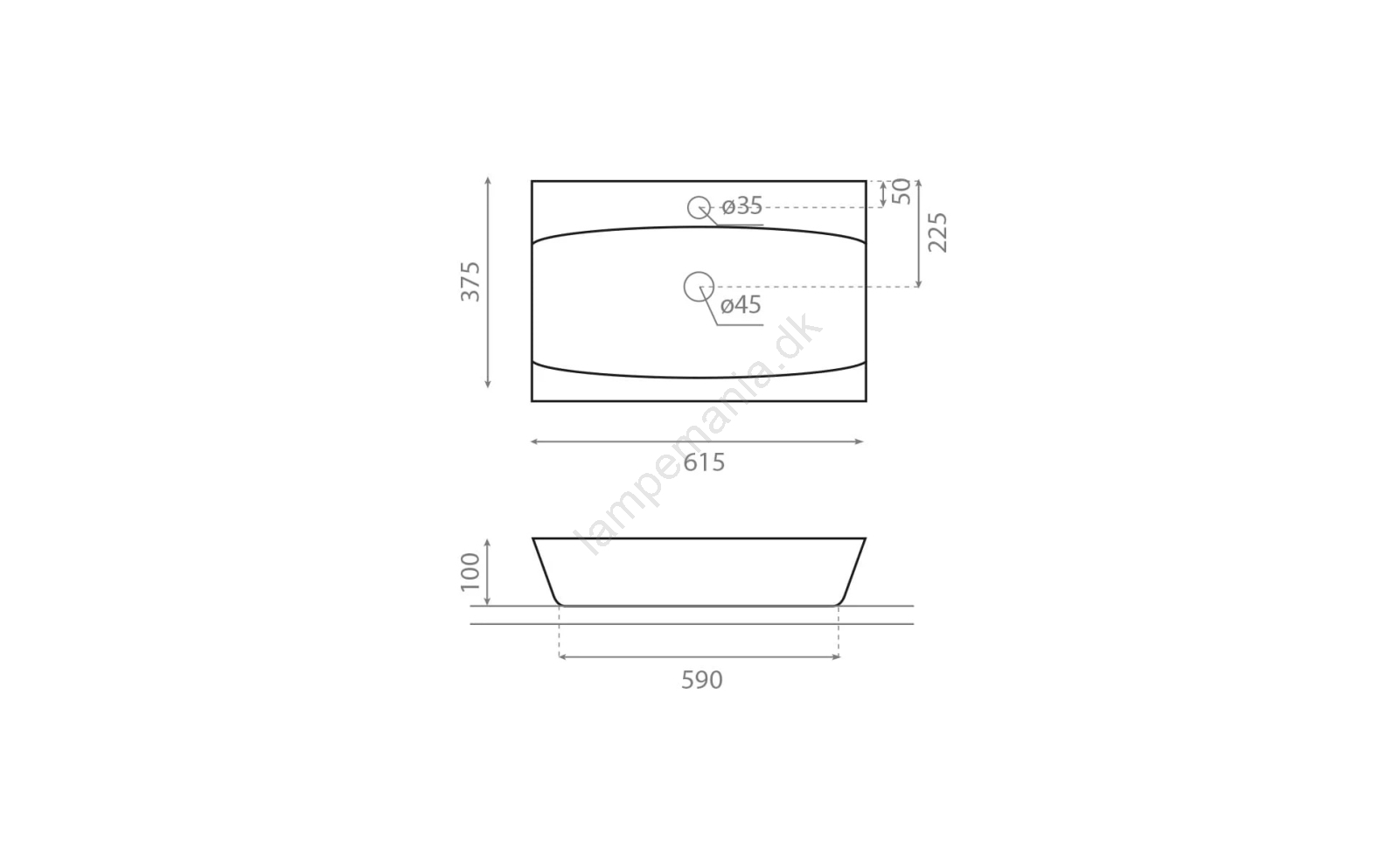 • Pakken indeholder vasken uden afløbssifon og armatur.